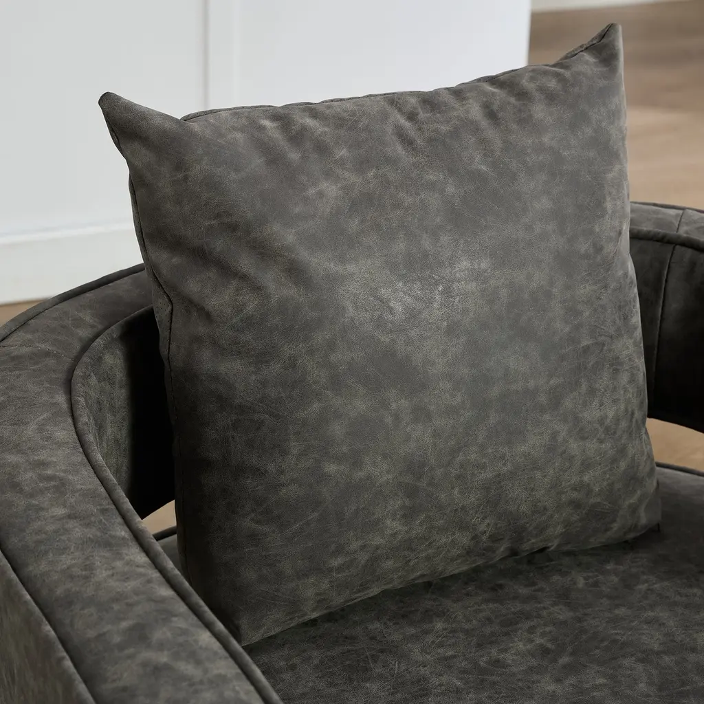 Fernleigh Swivel Accent Open Back Barrel Chair With Weathered Base - Beige