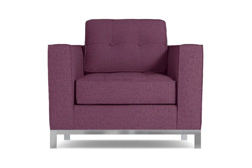 After seeing a hot new band at the Fillmore, come home and unwind with a few episodes of "Fillmore!" while lounging in the Fillmore Chair from Apt2B. You might think that's too much Fillmore, but you'll change your tune once you sink into this sophisticated arm chair. The deep seat and wide arms give you the support you need, while the button tufting and stainless steel base add a swankiness that feels like its own downtown hotspot. Take your pick of bright, cool or neutral fabrics to make your Fillmore Arm Chair fit in with an existing theme or stand out like the star it is. The ultimate in sophistication and downtown style, The Fillmore is a hot addition to any room that needs a boost. A full stainless steel base and a nice deep seat make this a chair you will have for years and the tufting on the seat and back cushions make it a timeless design.