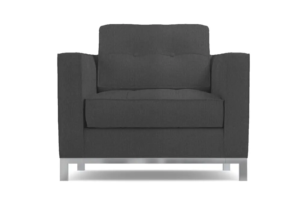 After seeing a hot new band at the Fillmore, come home and unwind with a few episodes of "Fillmore!" while lounging in the Fillmore Chair from Apt2B. You might think that's too much Fillmore, but you'll change your tune once you sink into this sophisticated arm chair. The deep seat and wide arms give you the support you need, while the button tufting and stainless steel base add a swankiness that feels like its own downtown hotspot. Take your pick of bright, cool or neutral fabrics to make your Fillmore Arm Chair fit in with an existing theme or stand out like the star it is. The ultimate in sophistication and downtown style, The Fillmore is a hot addition to any room that needs a boost. A full stainless steel base and a nice deep seat make this a chair you will have for years and the tufting on the seat and back cushions make it a timeless design.