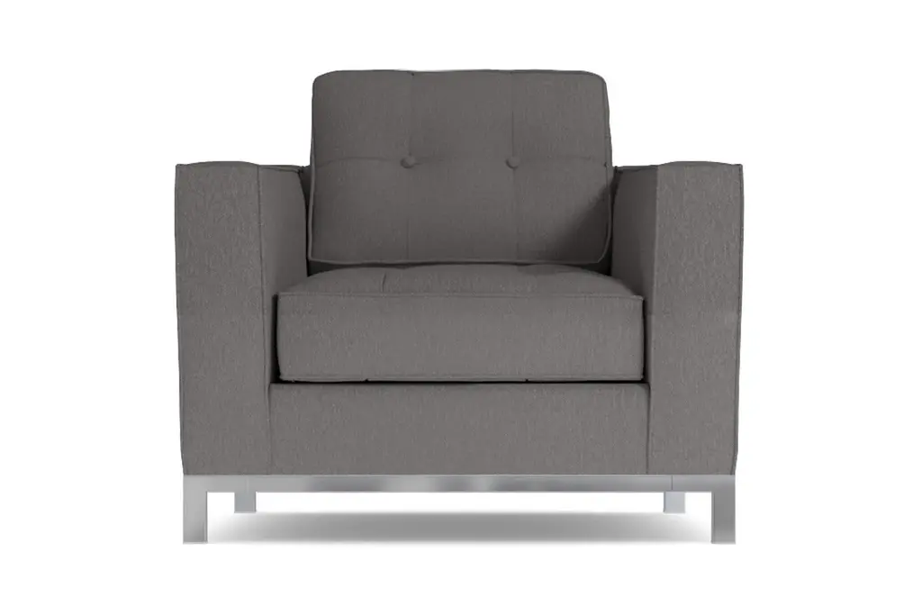 After seeing a hot new band at the Fillmore, come home and unwind with a few episodes of "Fillmore!" while lounging in the Fillmore Chair from Apt2B. You might think that's too much Fillmore, but you'll change your tune once you sink into this sophisticated arm chair. The deep seat and wide arms give you the support you need, while the button tufting and stainless steel base add a swankiness that feels like its own downtown hotspot. Take your pick of bright, cool or neutral fabrics to make your Fillmore Arm Chair fit in with an existing theme or stand out like the star it is. The ultimate in sophistication and downtown style, The Fillmore is a hot addition to any room that needs a boost. A full stainless steel base and a nice deep seat make this a chair you will have for years and the tufting on the seat and back cushions make it a timeless design.