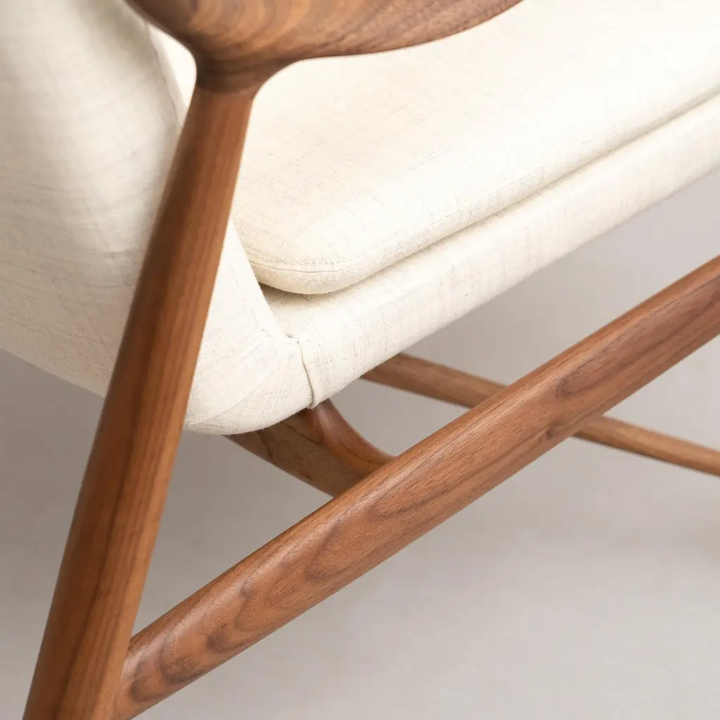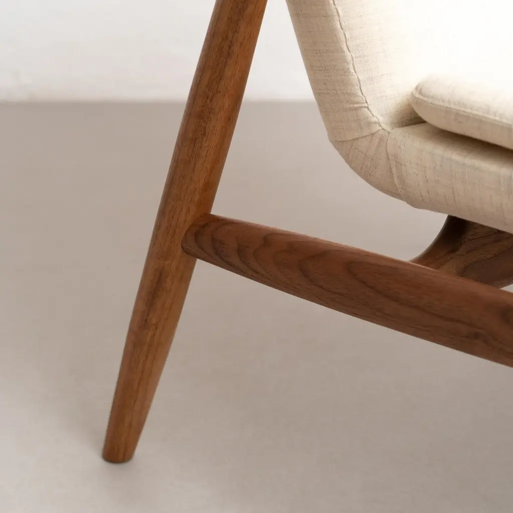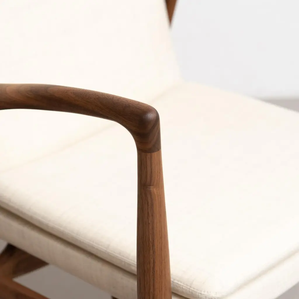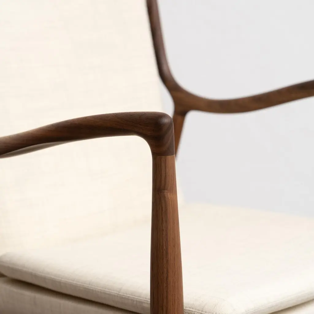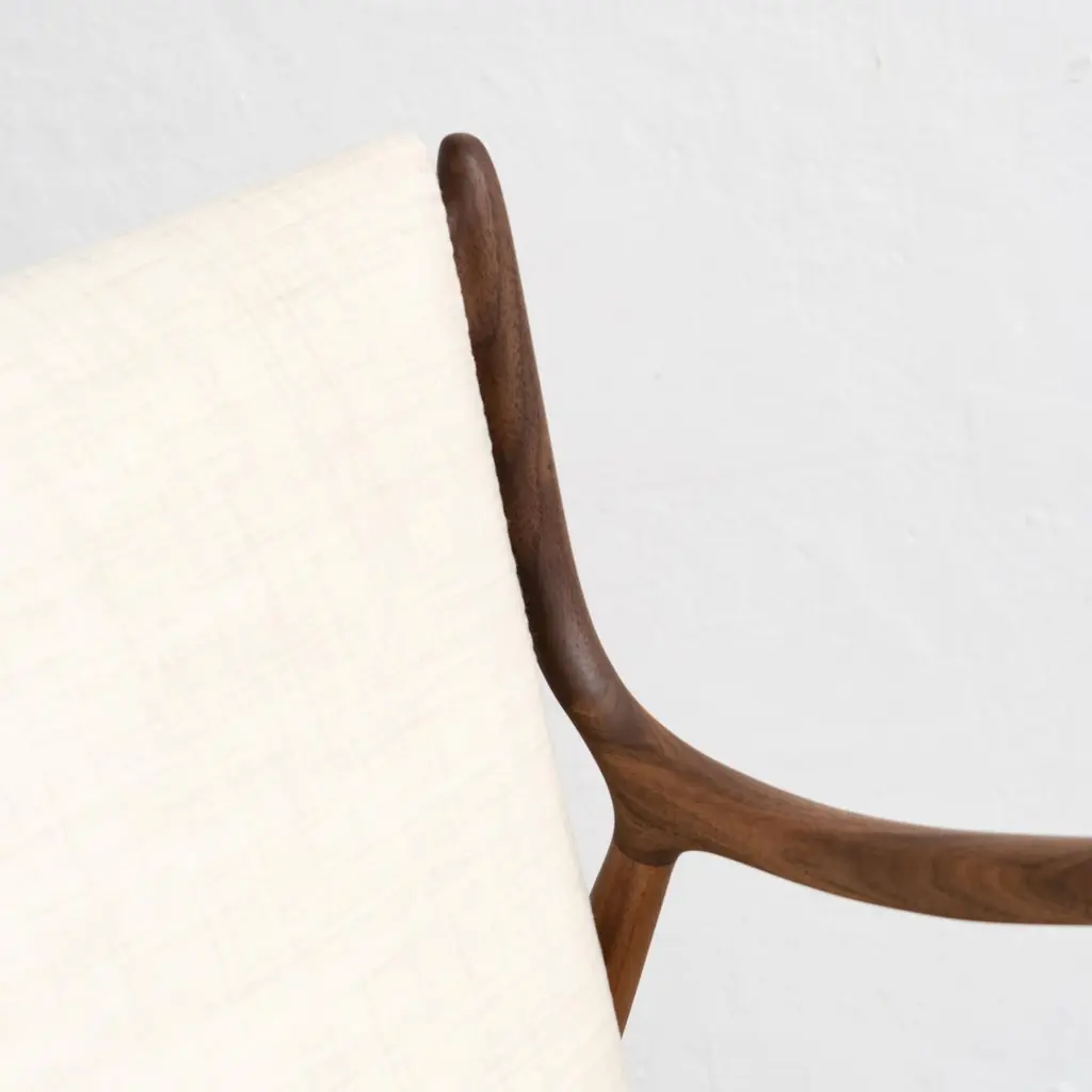 Chair designed by Finn Juhl in 1945, relaunched in 2003.Manufactured by House of Finn Juhl in Denmark.In the Autumn of 1945, Finn Juhl presented the 45 Chair at the annual Cabinetmakers’ Guild Exhibition. Today, the chair is widely regarded as one of the most revolutionizing and iconic pieces within Danish furniture design. Finn Juhl dreamt of studying art history and his deep understanding of international contemporary art is abundantly clear in the bold 45 Chair. With its curved backrest and organic shape this chair cemented Finn Juhl as one of the leading designers of the 20th century. In a review on Finn Juhl's stand at the exhibition in 1945, the architect Erik Herløw wrote; “Most interesting about the exhibition is probably Finn Juhl's work. After many years of experiments, we now see a clarified result. Finn Juhl does not design on a refinement of traditions but has instead logically solved functions and therefrom shaped furniture on his terms. In the early years, Finn Juhl’s attempts seemed exaggerated, but now it is so much more interesting to observe the result he has achieved by going his own ways. Most beautiful is an armchair, where the frame is organically shaped as a bone, able to support the muscles of an arm and the weight of a body. The expression of the chair is reminiscent of a weapon, sharpened by human hands.”The 45 Chair is a true masterpiece and has become an icon of Finn Juhl’s universe of furniture. With this chair, Finn Juhl managed to create an, at the time, unseen design by separating the carried and the carrying elements. In reality, Finn Juhl had previously experimented with separating the upholstered parts from the wooden parts within his furniture, but with the sleek, strong and elegant 45 Chair this unique design characteristic manifested. On the 45 Chair the space between the frame and the seat creates a lightness, which combined with its organic shape and sublime detailing, ensures unique beauty and floating elegance. The chair appeals to all senses and pleases the eye and body alike. Furthermore, the 45 Chair has been called “the mother of all modern chairs” by the Japanese professor and design collector Mr. Noritsugu Oda. The groundbreaking 45 Chair became the prelude to the unfolding of Finn Juhl’s characteristic style of design that we know from the latter part of the 1940s. During this period, his designs are characterized exactly by liberating the seat and backrest as a single unit carried by the frame. This approach became a defining moment in establishing Finn Juhl’s status as a pioneer within furniture design.Dimensions:W: 66.5 cmD: 73 cmH: 88 cmSeat height: 42 cmImportant information regarding images of products:Please note that some of the images show other colors and variations of the model, these images are only to present interior design proposals. The item that is selling is on the first image. Important information regarding color(s) of products:Actual colors may vary. This is due to the fact that every computer monitor, laptop, tablet and phone screen has a different capability to display colors and that everyone sees these colors differently. We try to edit our photos to show all of our products as life-like as possible, but please understand the actual color may vary slightly from your monitorAbout the designer:Finn Juhl was born on January 30, 1912 in Copenhagen. He wished to study art history, however, his father would not allow it. Instead, Finn Juhl began studying architecture at the Royal Academy of Arts in Copenhagen. Here, he studied under some of the most influential functionalists of his time. Among these was the great architect Vilhelm Lauritzen who hired Finn Juhl at his own studio in 1934 before Finn Juhl had even graduated. Eventually, the work took up all of his time and Finn Juhl never finished his studies. Later in life he always described himself as a self-taught furniture designer. One of the international highlights of Finn Juhl’s career was designing the complete interior of the Trusteeship Council Chamber at the UN headquarters in New York between 1951 and 1952. His sculptural furniture is widely appreciated all-over the world. Today, Finn Juhl is still considered the father of Danish Modern, the design movement from Denmark, that arose during the 1950s in the United States. At the time of his death in 1989, Finn Juhl had become an award-winning and highly respected international furniture artist. Finn Juhl was greatly inspired by both modernism in art and functionalism in architecture. His genius was cross-pollinating these two fields, thus creating a completely new artistic idiom. Like sculptures, Finn Juhl’s designs are created to stand freely in a room. At the same time, they are developed with a playful insight into the practical function of every detail. About the manufacturer:In 2001 House of Finn Juhl trusted with the exclusive rights to manufacture and relaunch Finn Juhl’s sculptural and iconic furniture by Finn Juhl’s widow Hanne Wilhelm Hansen. Today the unique Finn Juhl collection consists of more than 40 Classic masterpieces, all of which they manufacture with the utmost respect for the original heritage and strict demands for quality.