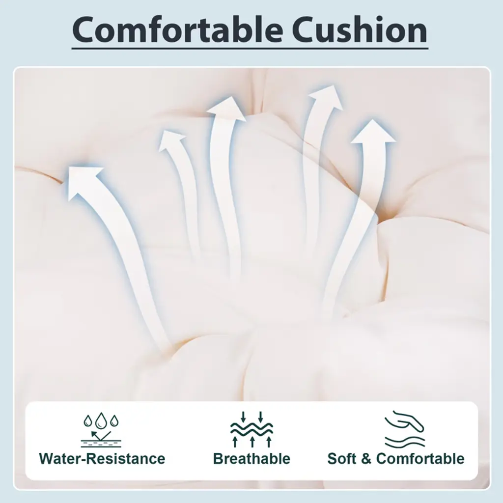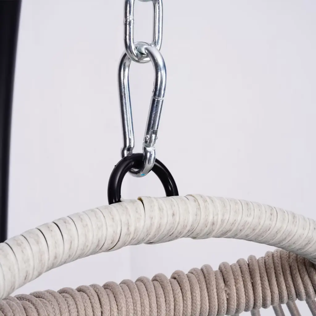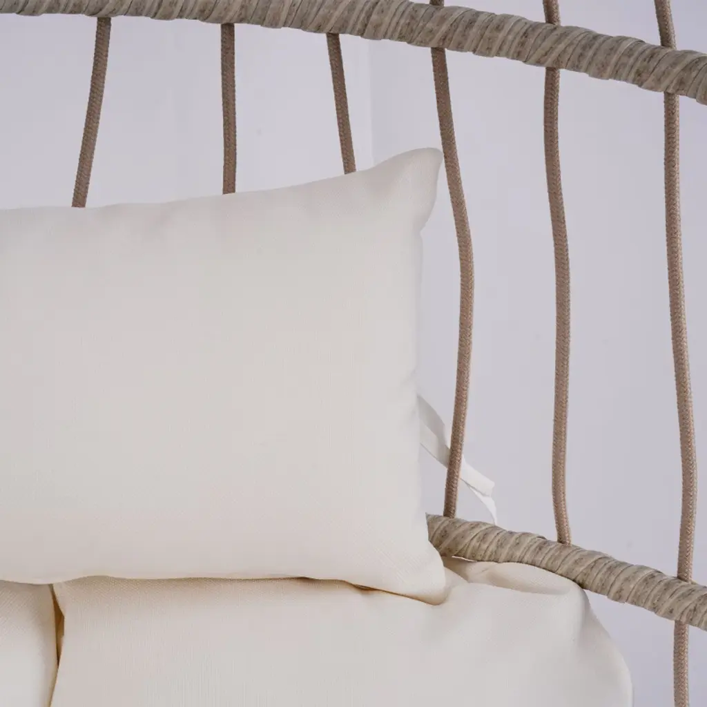 Create a serene escape with our Off-White Outdoor Hanging Egg Chair with Stand. Designed with a sleek egg-shaped silhouette and crafted from weather-resistant PE wicker, this swing chair includes a heavy-duty steel stand and ultra-soft off-white cushions for timeless comfort. Whether placed in your garden, balcony, or living room, it adds a relaxing charm and modern elegance to any space. Easy assembly makes setup a breeze.
