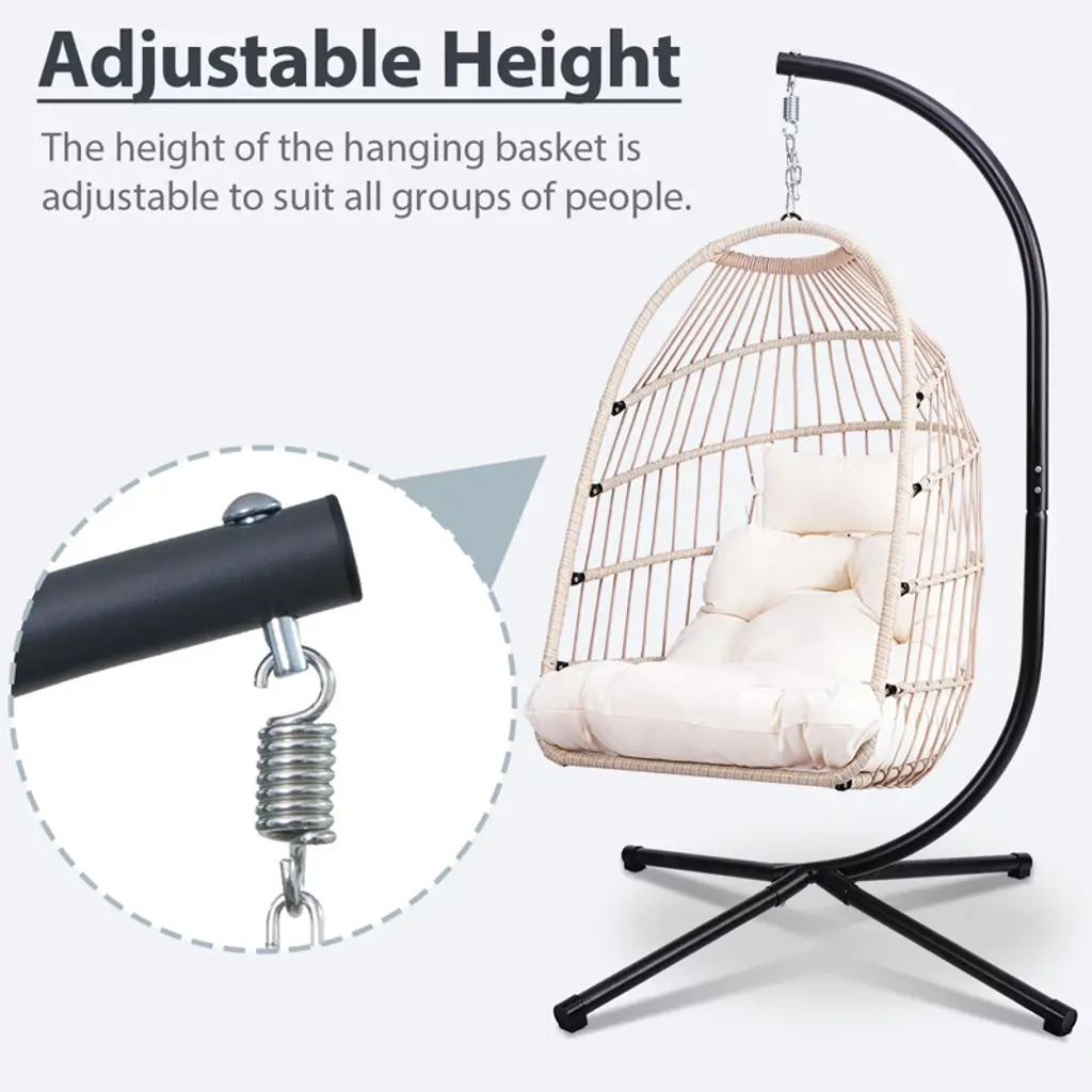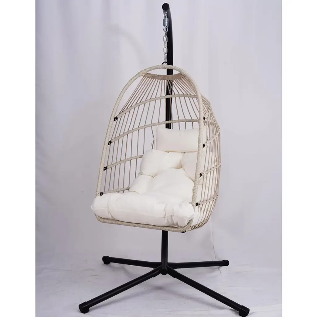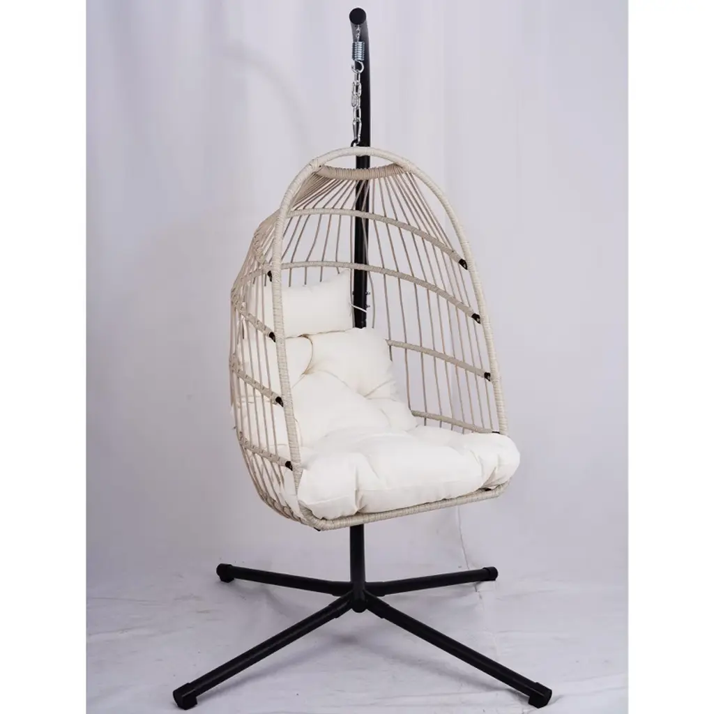 Fioneca Off-white Outdoor Hanging Egg Chair With Stand ̈C Wicker Swing For Patio & Indoor Spaces