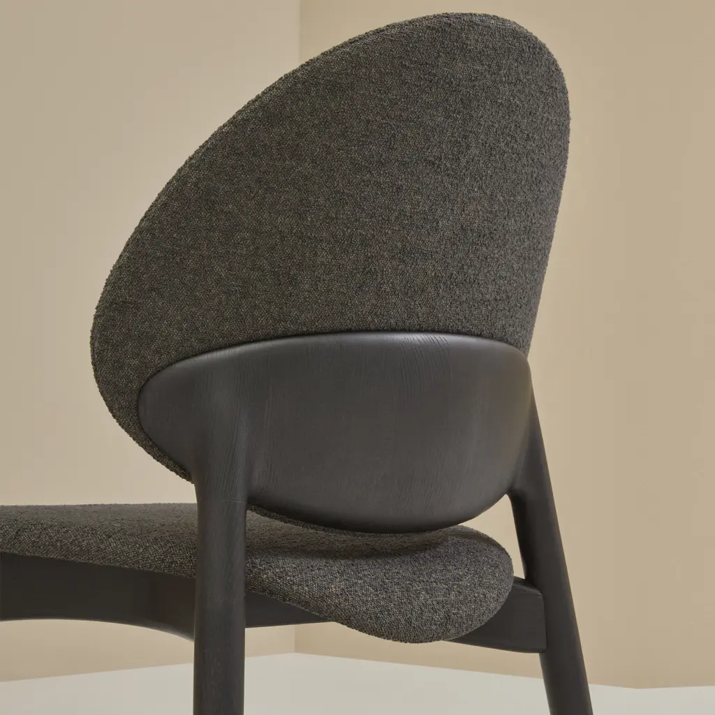 Inspired by architecture, the Billiani Fleuron chairs reference a buttress with their imaginative design. Constance Guisset created the series with an eye-catching detail at the back: a graft between the frame and backrest, finished to perfection with a graceful rounded form. A seat that curves downward at the back and tubular angled legs complete the design. Crafted with care from solid ash wood, the Billiani Fleuron chair comes with a wood stain, colored stain, or matte lacquer finish. Billiani offers the design in an all-wood version or with padding on the seat and back. In all versions, the backrest detail stands out, whether in a contrasting color or thanks to a different wood finish.