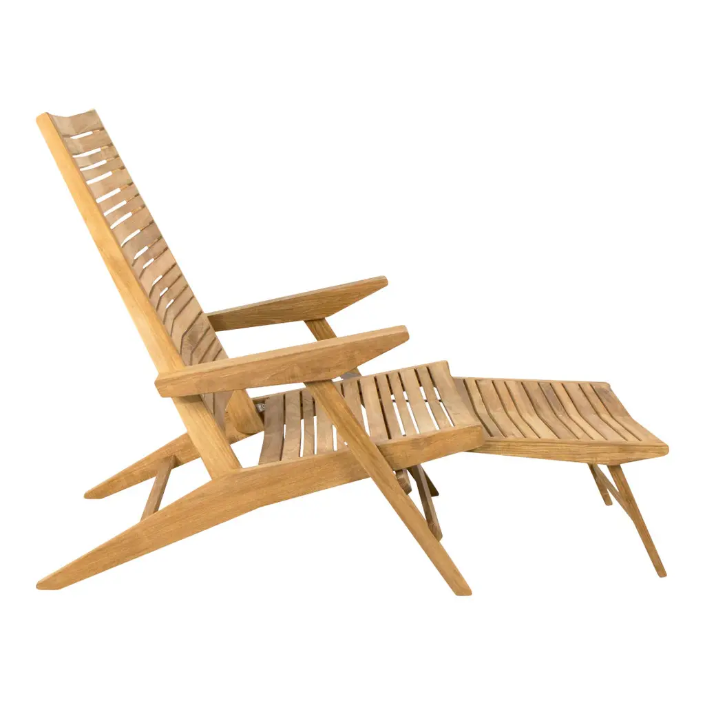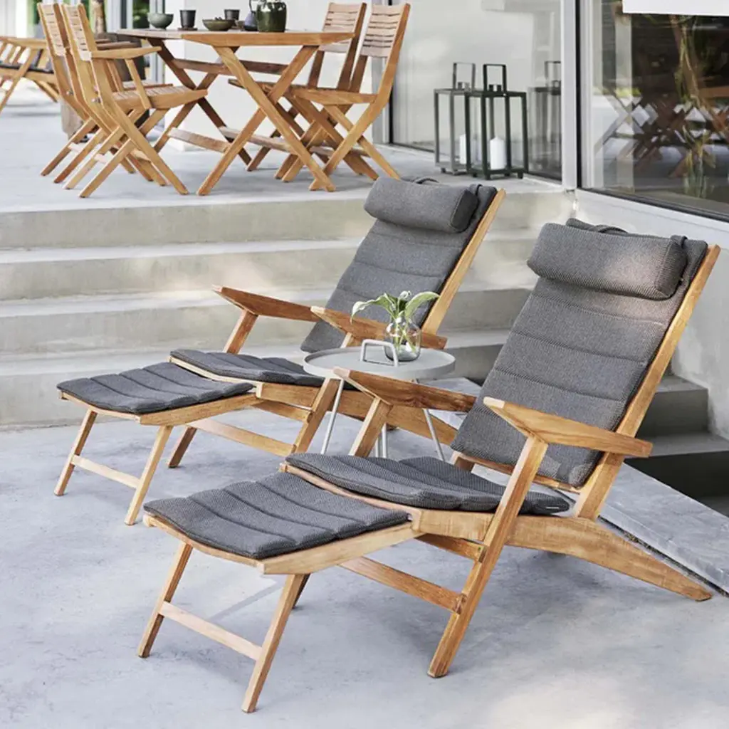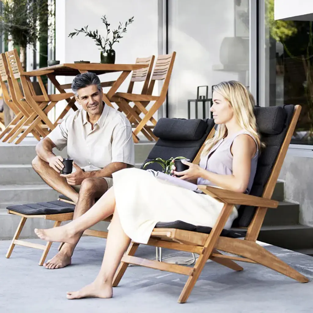 Flip deck chair is a great addition to the Flip series designed by the Danish design duo Strand+Hvass. Flip is crafted from high-quality Grade A teak, which gives a beautiful warm glow to the chair. An eye-catching design feature is the various sizes of the slats, which gives a stylish and vibrant design expression. Additionally, it has several practical functions, such as an adjustable backrest and an integrated footrest, which can easily be pushed below the seat, when not in use. For extra comfort, it is possible to purchase a matching cushion-set with neck support for the deck chair. Cane-line teak is harvested under the SVLK certification ensuring that the teak production supports responsible forest management. To preserve the original golden-brown unique teak colour and maintain the fine teak wood, we recommend using Cane-line Teak Care products.