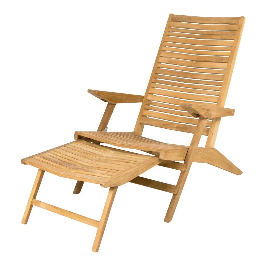 Flip deck chair is a great addition to the Flip series designed by the Danish design duo Strand+Hvass. Flip is crafted from high-quality Grade A teak, which gives a beautiful warm glow to the chair. An eye-catching design feature is the various sizes of the slats, which gives a stylish and vibrant design expression. Additionally, it has several practical functions, such as an adjustable backrest and an integrated footrest, which can easily be pushed below the seat, when not in use. For extra comfort, it is possible to purchase a matching cushion-set with neck support for the deck chair. Cane-line teak is harvested under the SVLK certification ensuring that the teak production supports responsible forest management. To preserve the original golden-brown unique teak colour and maintain the fine teak wood, we recommend using Cane-line Teak Care products.