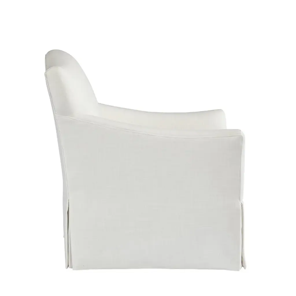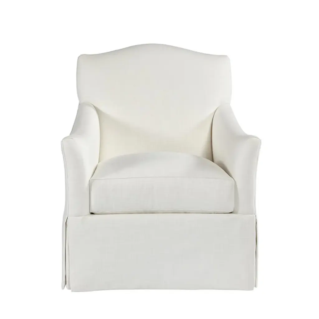 The Florian Chair provides subtle elegance and femininity to any space, and is especially beautiful when done in a patterned fabric. It features an Ultra Down seat cushion for superior comfort, and a dressmaker skirt for added flair. Ships In 8-10 Weeks Tight back One loose seat cushion As Shown Fabric: Affinity White, Gilcrest Aqua (lifestyle) As Shown Finish: Modern Elm If you choose to purchase COM, once you have placed your order a customer service rep will contact you regarding where to send your fabric. Please note that current lead time is 17-19 weeks once your fabric arrives at the factory, and if unused fabric is under 1.5 yards, it cannot be sent back to you.This product can be special ordered in additional fabrics, leathers, finishes, and cushion fillings. Click here to email us for for additional information about special ordering.This image is for illustrative purposes only. The colors shown are accurate within the constraints of lighting, photography, and the color accuracy of your screen.