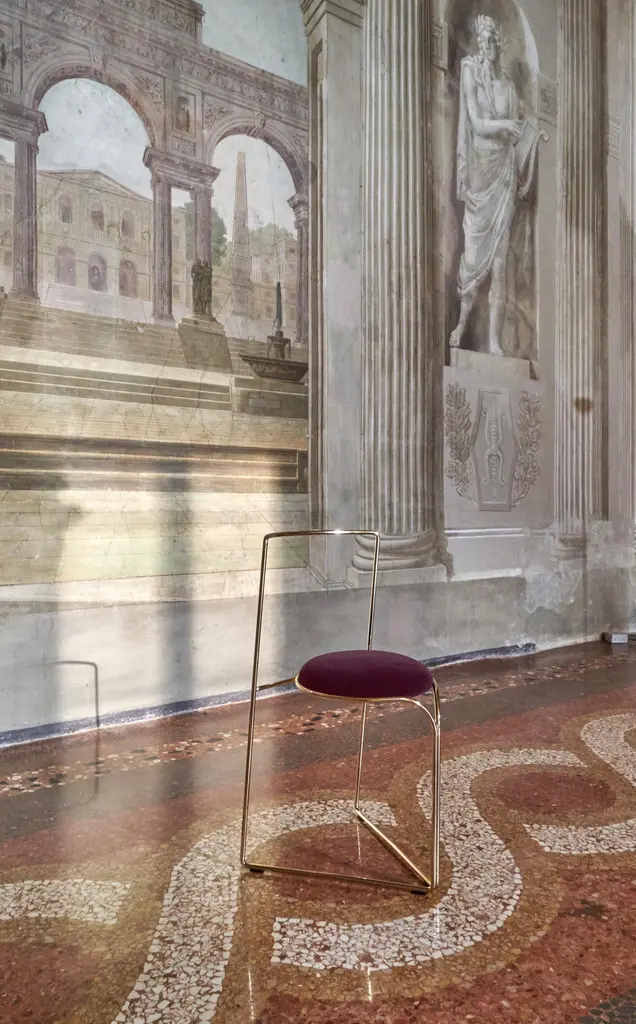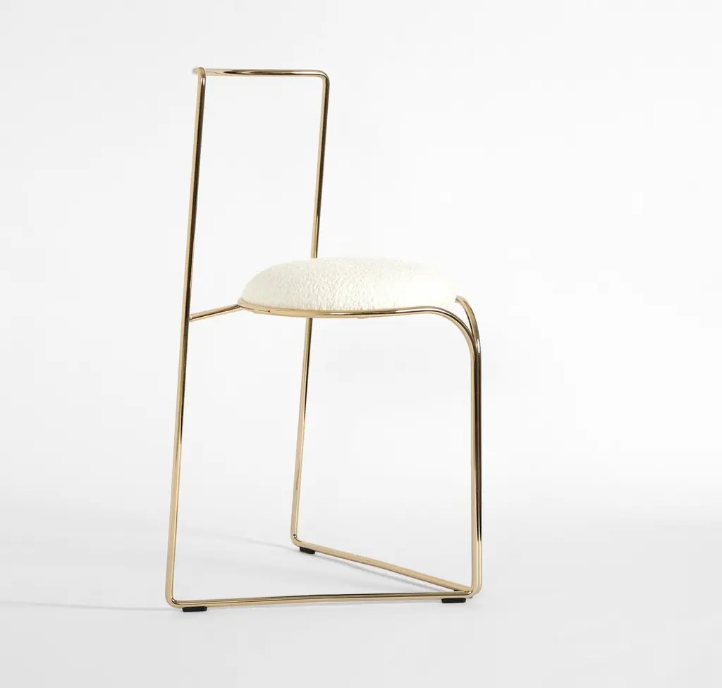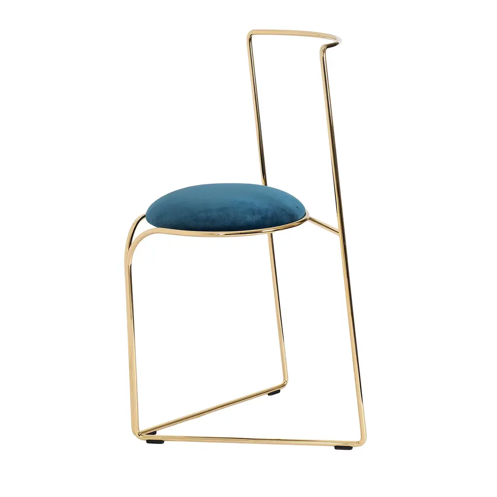 An element, a continuous wire drawing geometries born from the projection of a circle on a triangle, in which the rigour of the continuous lines plays with the circular shapes that embrace the padding creating a support for the back.Flow chair or sculpture, design by Enrico Girotti, is the soul of wire design collection of lapiegaWD that is characterized by elasticity and flexibility of design that uses wire, solid, durable and resistant, bent into shape with care and precision, completely made in Italy.Flow chair is characterized by elegant and accurate design; made in steel or stainless steel, constructed under the direct control of the designer from selected Italian artisan.Thanks to the different finishes available, allowing flow chair to be placed in different types of contexts.