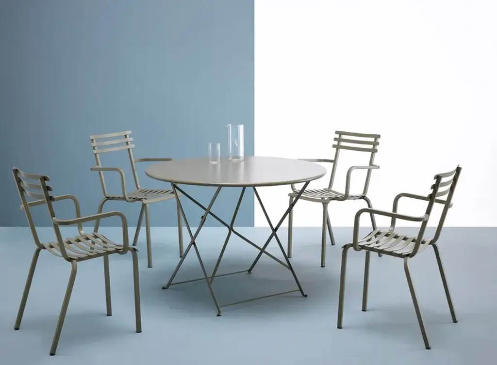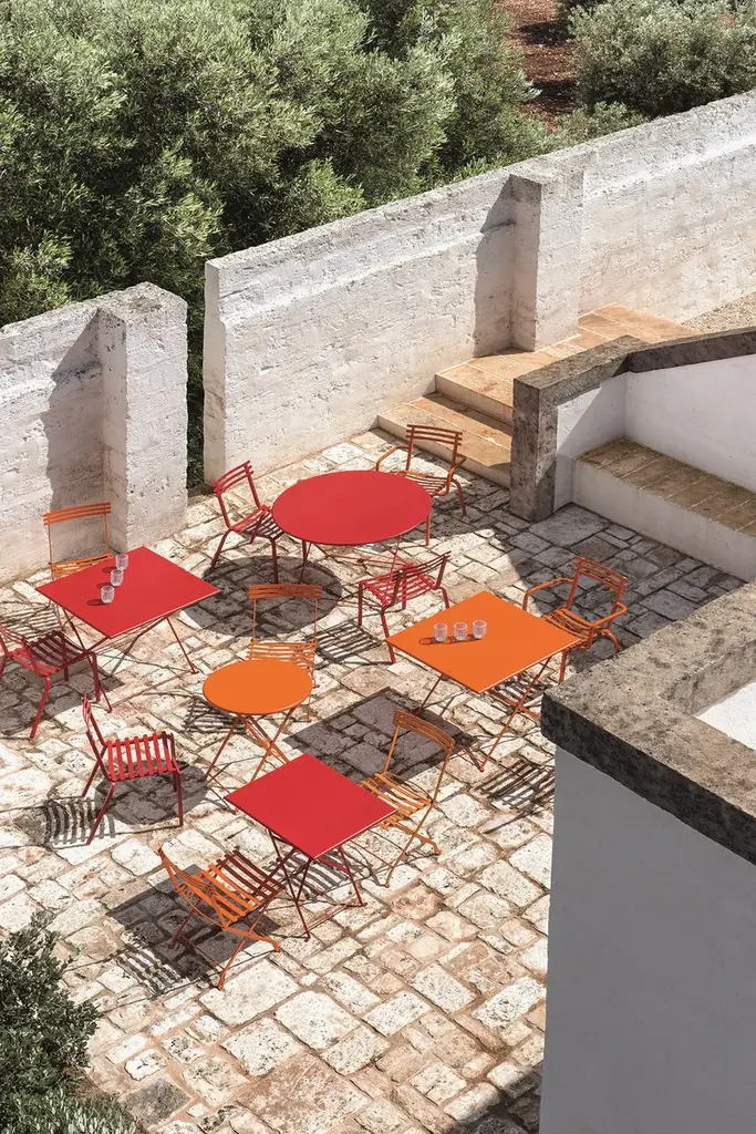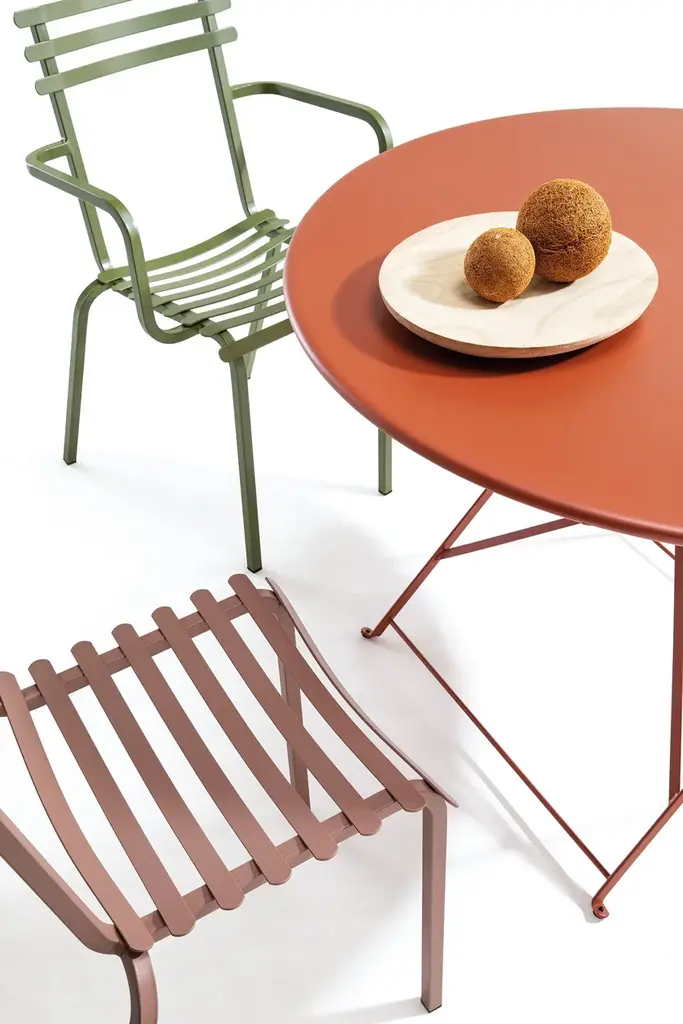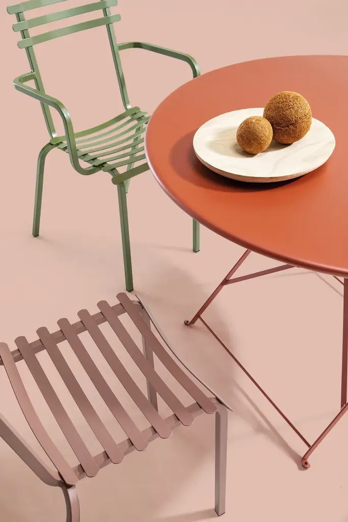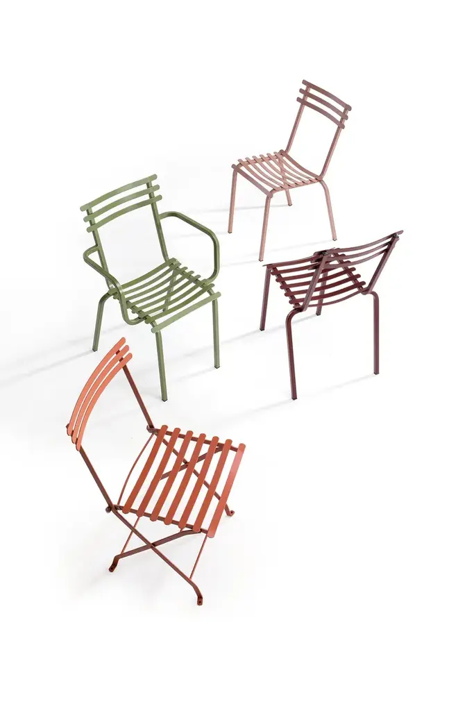 Stacking or folding metal chair available in 12 colours.A design concept which has become a true icon of Ethimo production and open–air living in general. FLOWER, a complete collection of metal furniture which combines lightweight shapes with a wide range of colours.
