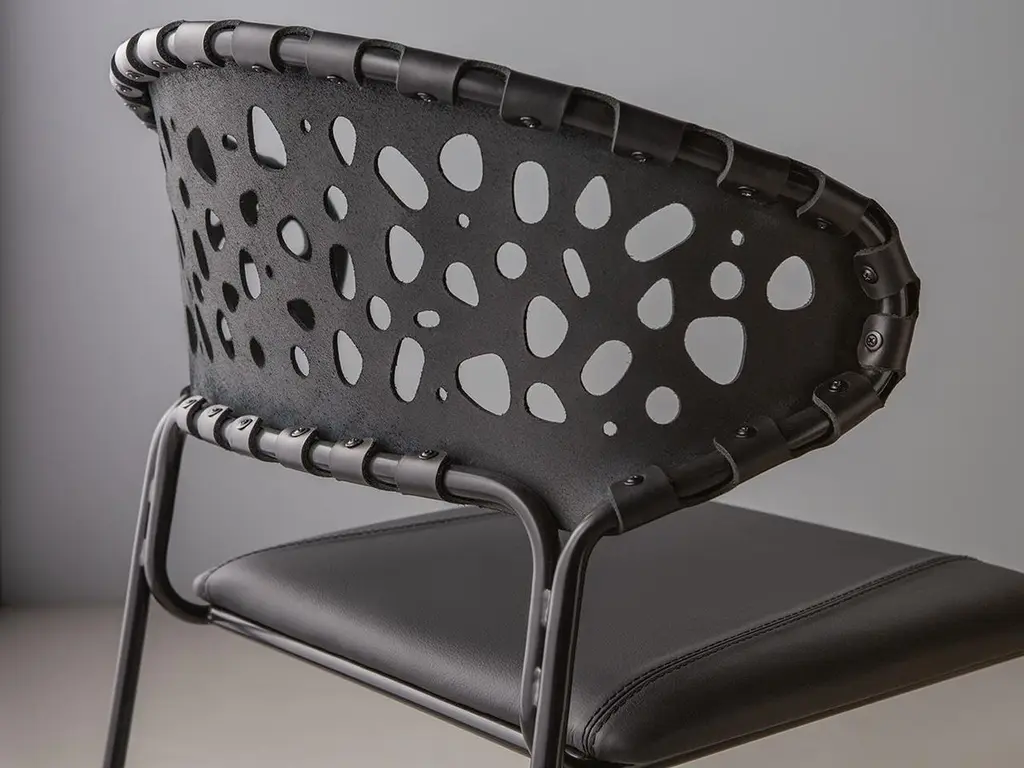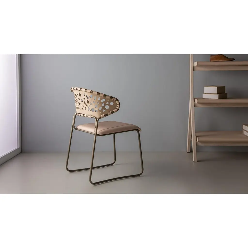 Foratta Chair by Doimo BrasilDimensions: W 59 x D 58 x H 79 cm Materials: Metal, Natural leather with upholstered seat.With the intention of providing good taste and personality, Doimo deciphers trends and follows the evolution of man and his space. To this end, it translates into its products: simplicity, creativity and technology, creating a scenario that adapts to all lifestyles.Founded in 1994, it is currently an Italian-Brazilian joint venture located in Ribeirão das Neves, Minas Gerais, Brazil.