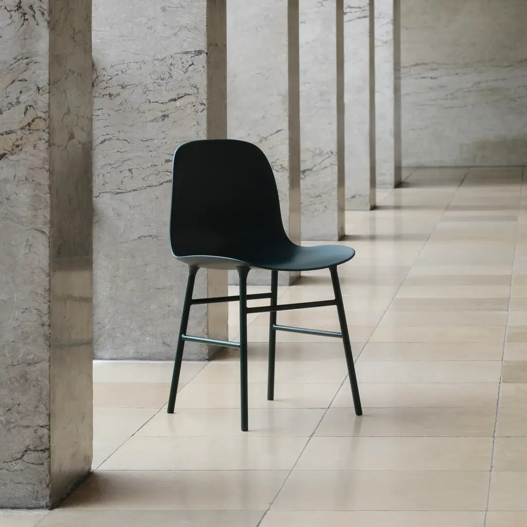 Danish designer Simon Legald is in rare Form. His seamless polypropylene shell chair for Normann Copenhagen is the result of more than 20 prototypes created over 3 years. Only then did he find a way to gracefully integrate the molded plastic seat with the steel chair frame for a clean silhouette. And the sturdy materials and contoured shape mean hours of comfortable seating."I had an idea of what the ideal chair should look like," Simon says. "I analyzed hundreds of chairs from different periods during the design process."