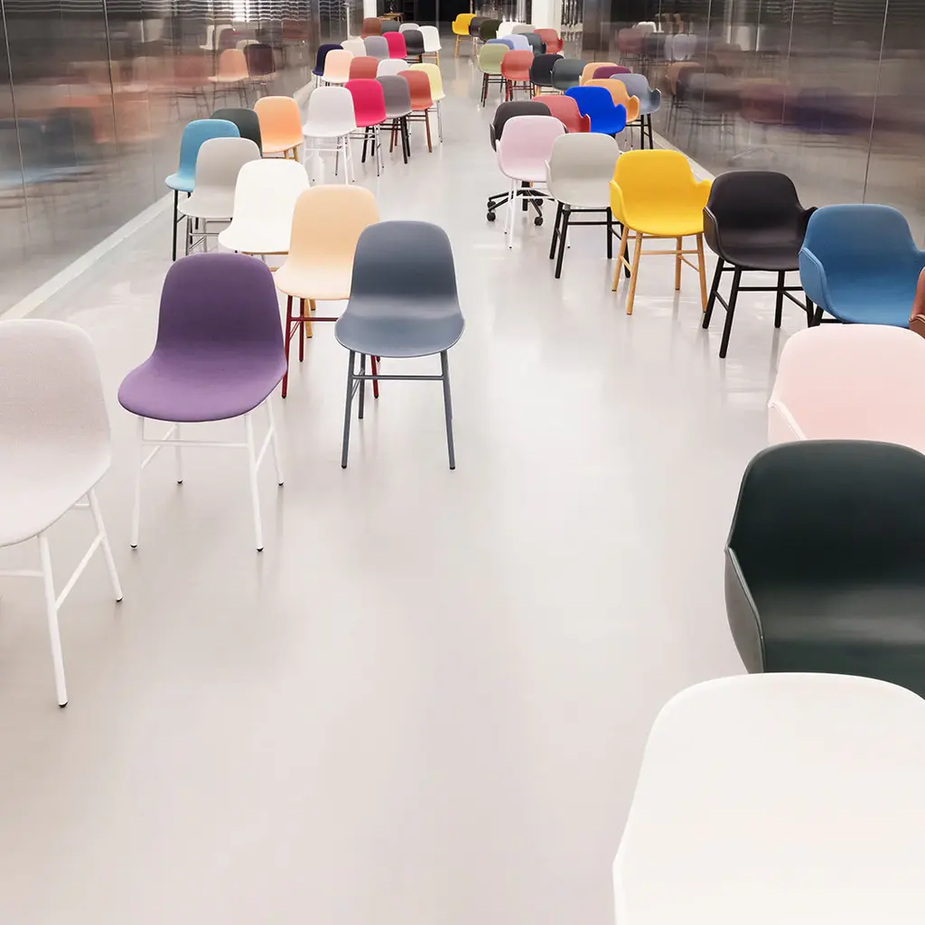 Form tells the story of a design company and a designer with the vision of creating the perfect chair. A tribute to form itself, the uncompromising design combines a strong design idiom with comfortable curves and an innovative industrial technique. The sleek mounting solution developed especially for the Form chair creates a natural integration between seat and base and makes it possible to mount different types of bases in the same openings. While retaining a homogenous and aesthetic design, the Form chair can be customized from more than 100,000 possible combinations of models, colors, textiles and bases, offering a wealth of opportunities for creative expression.