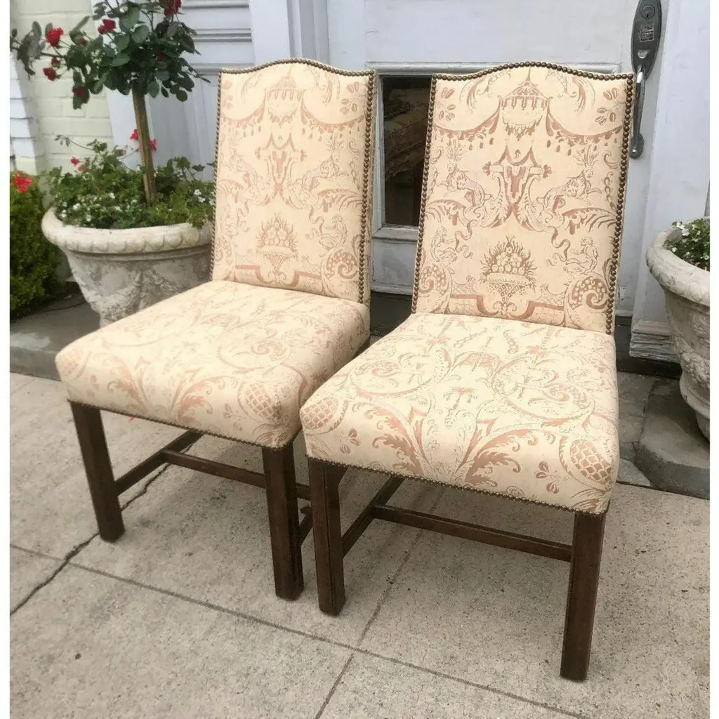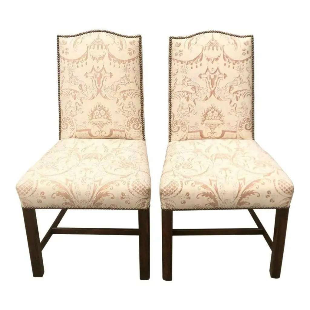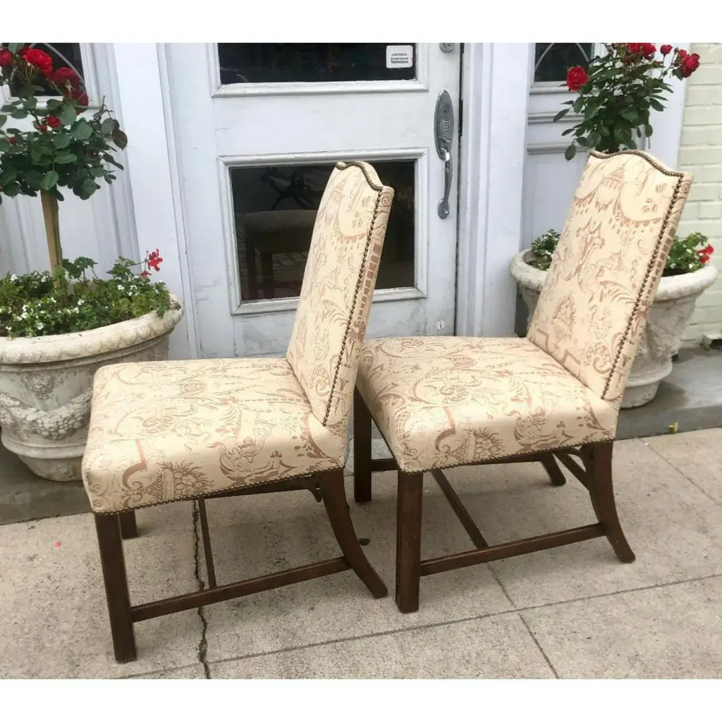 Priced each! Fortuny upholstered antique Chinese chippendale designer chairAdditional information: Materials: cotton, mahogany Color: beigeBrand: FortunyDesigner: FortunyPeriod: Mid-20th CenturyPlace of origin: ItalyStyles: Chinese, ChippendaleNumber of seats: 1Item type: vintage, antique or pre-ownedDimensions: 22.5"W × 25.75"D × 40.5"H.Seat height: 19.5 inCondition: good condition, original condition unaltered, some imperfections.