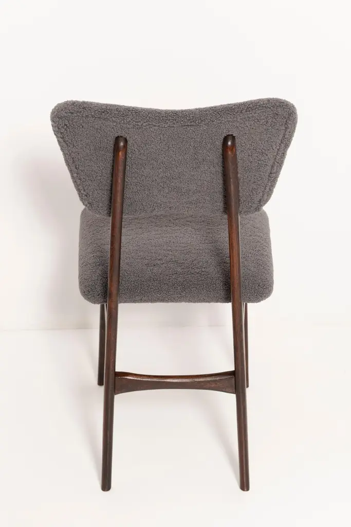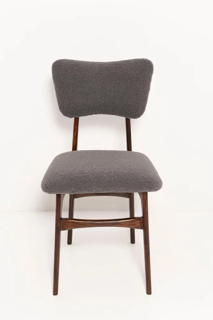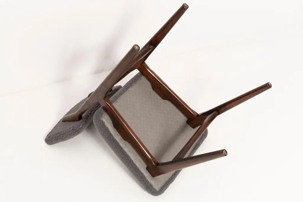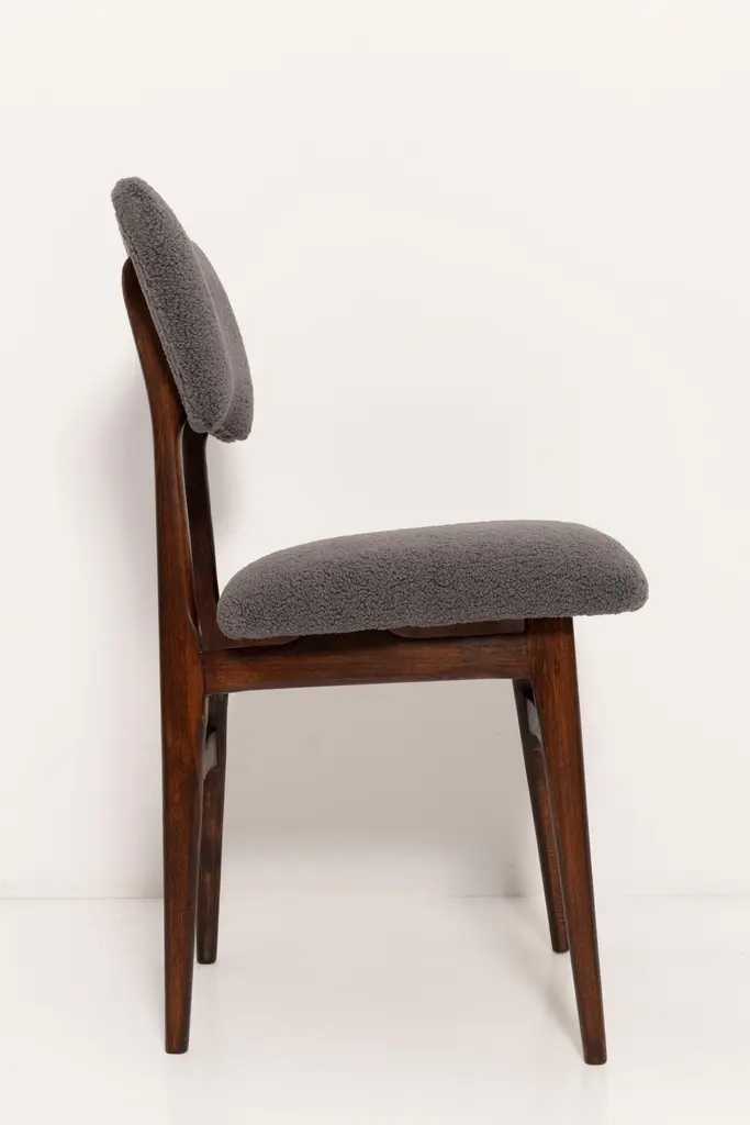 Chairs designed by Prof. Rajmund Halas. Made of beechwood. Chair is after a complete upholstery renovation, the woodwork has been refreshed. Seat and back is dressed in dark gray(color 07), durable and pleasant to the touch boucle fabric. Chair is stable and very shapely. They was produced in former furniture factory in Goleniów in the 1960s. We can prepare this set in every color of wood and fabric. Please check the last picture with boucle color samples.