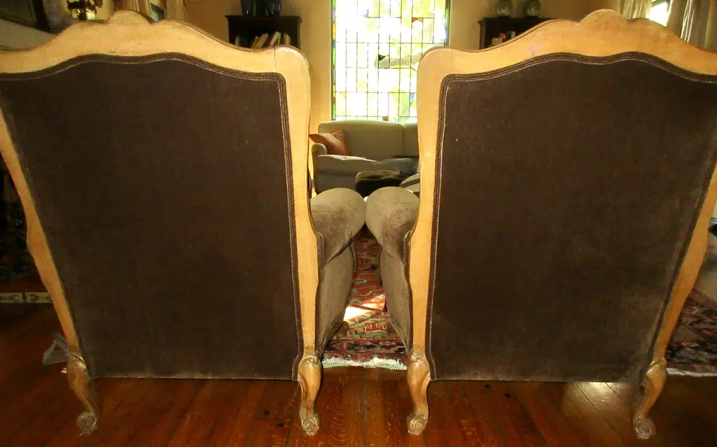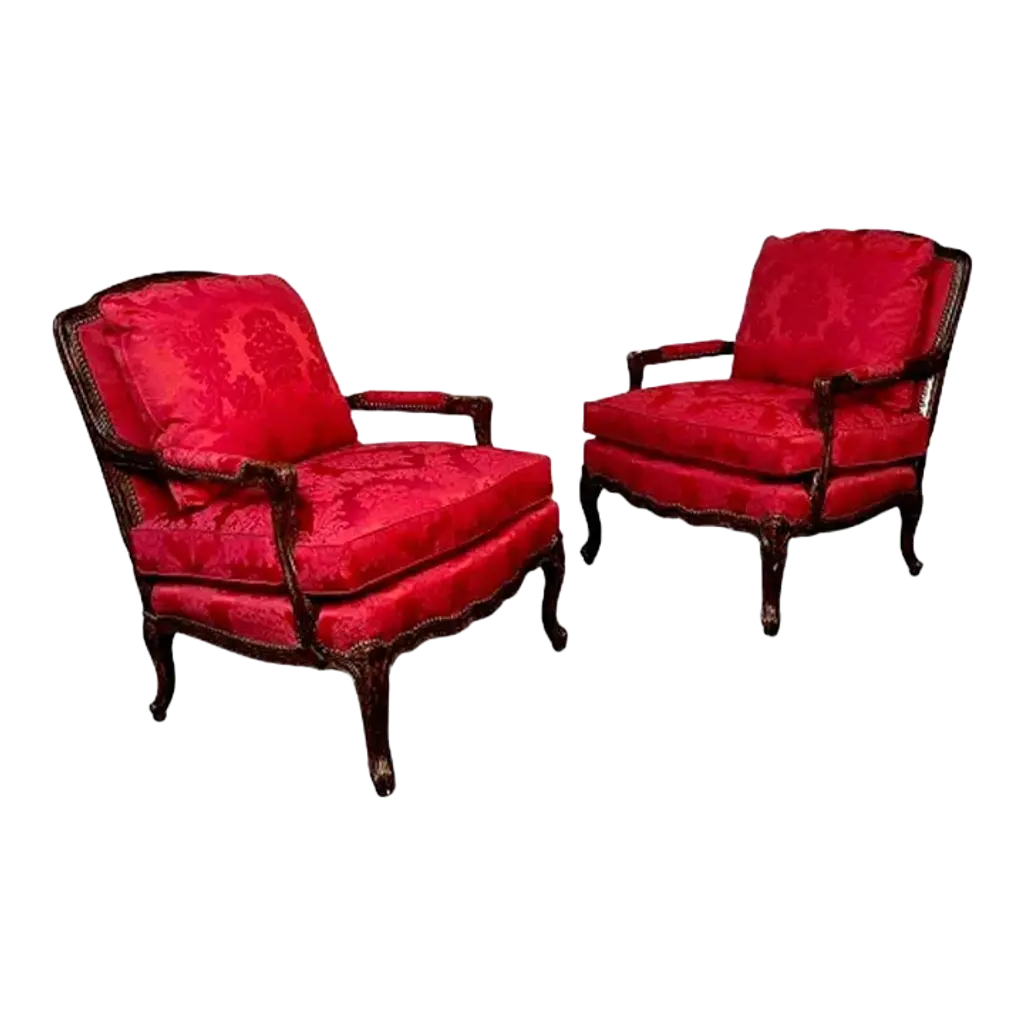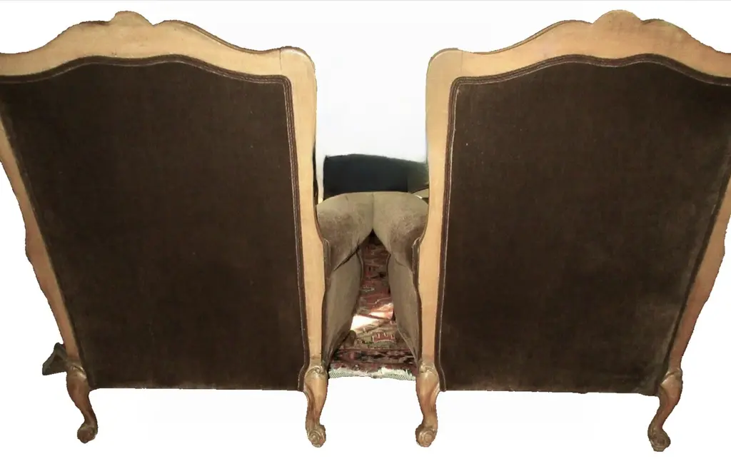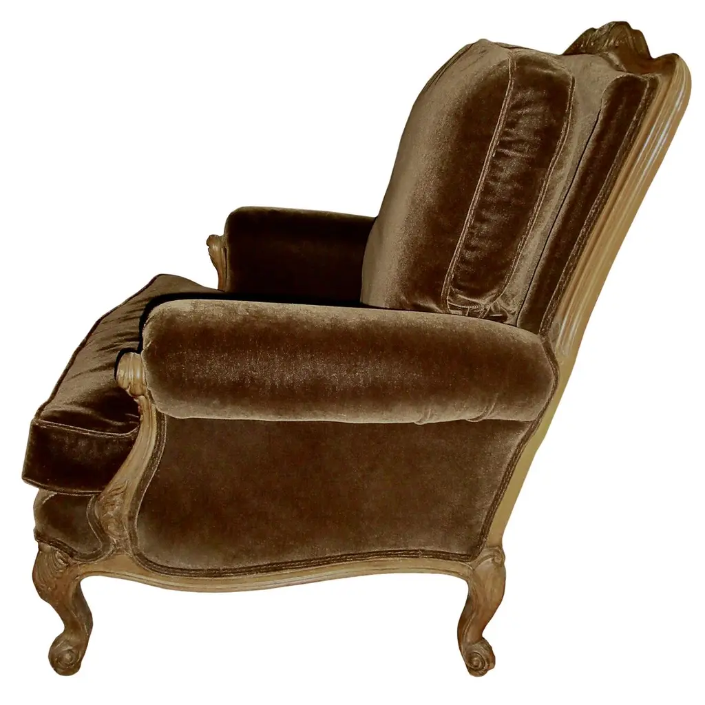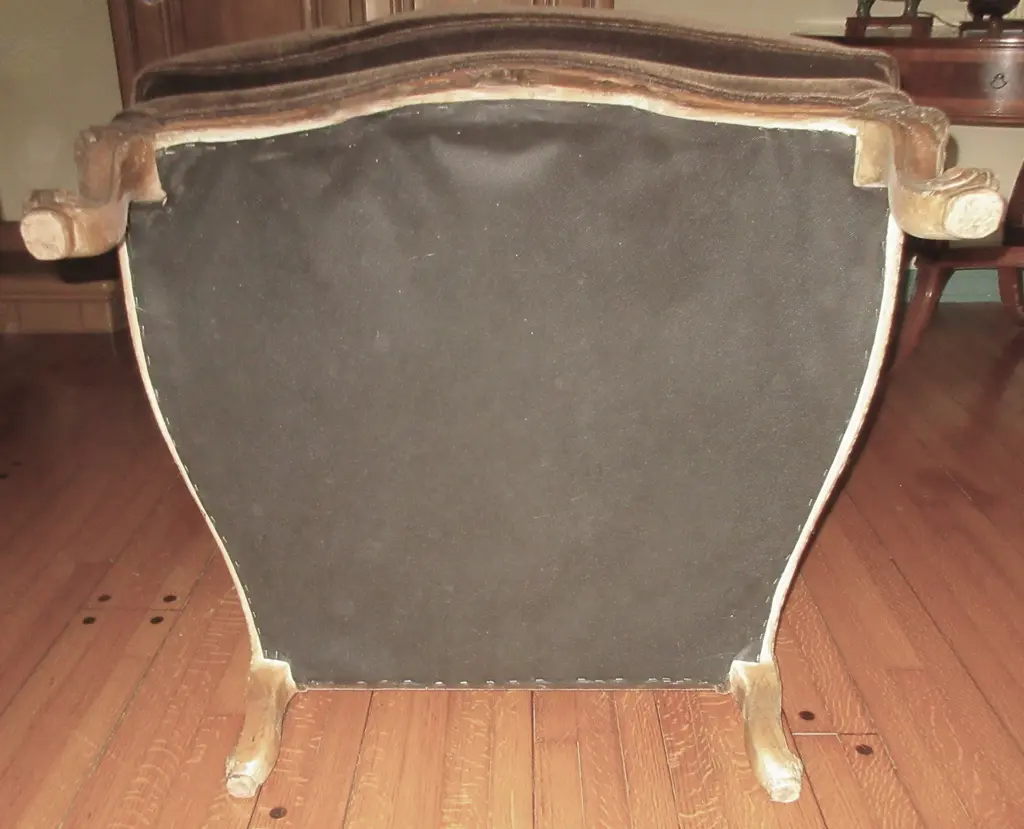 Fabulous pair of 19th century French bergeres. Sourced from Paris's wonderful St. Ouen flea market, shipped to the U.S., and reupholstered in rich dark chocolate mohair. Down and feather filled. Mohair is strong, a great fabric for people with pets. Don't spend less on another pair of chairs that your pet will destroy and force you to reupholster. Buy this pair!