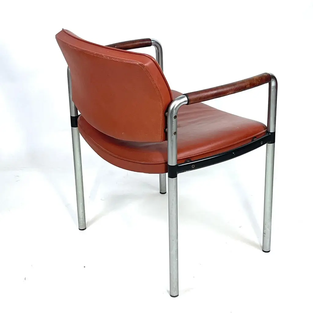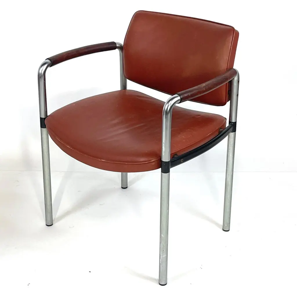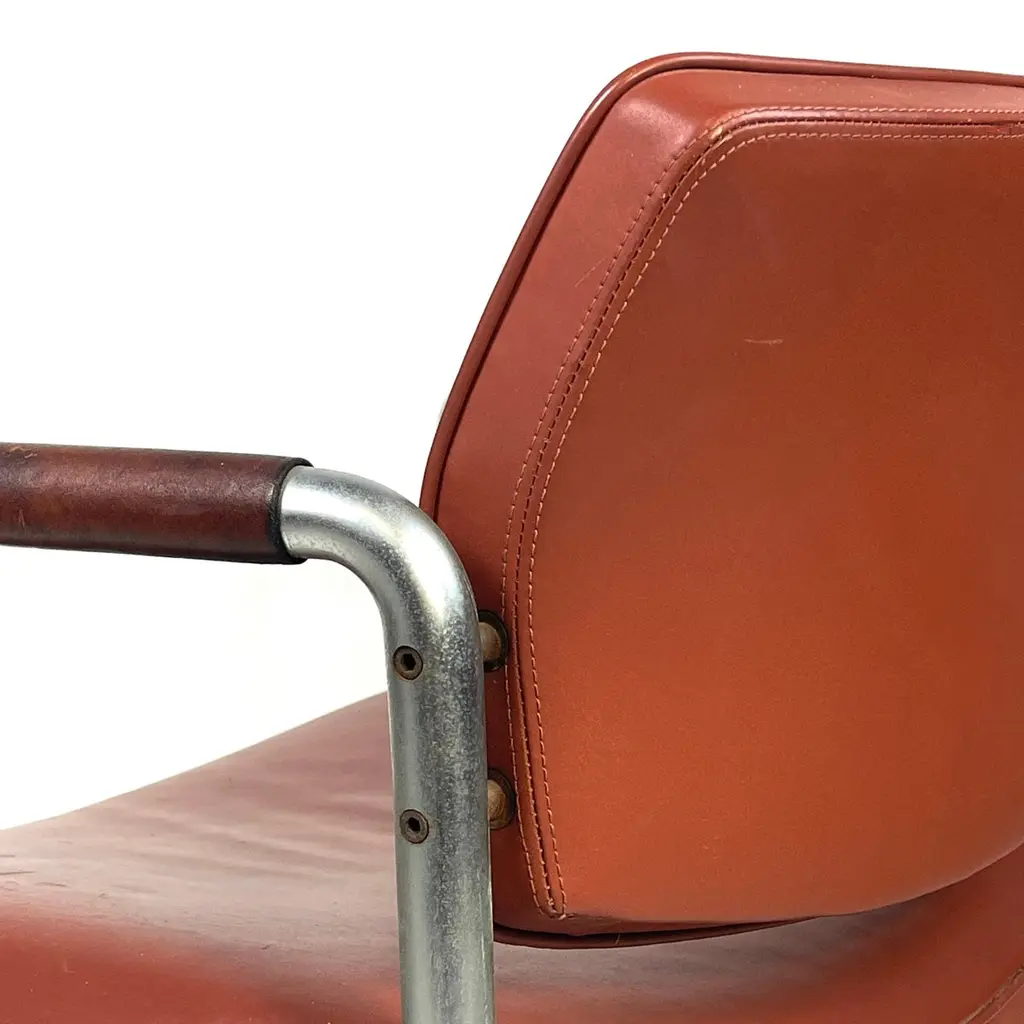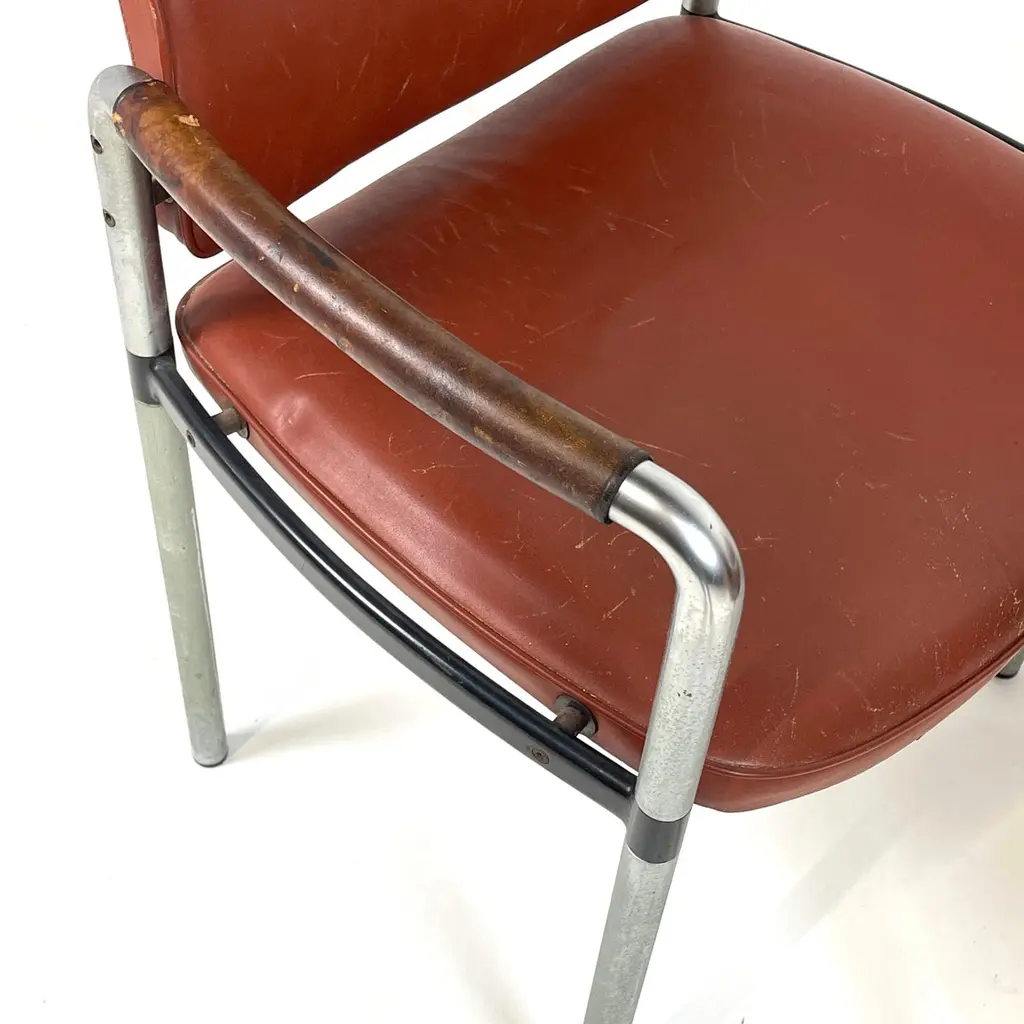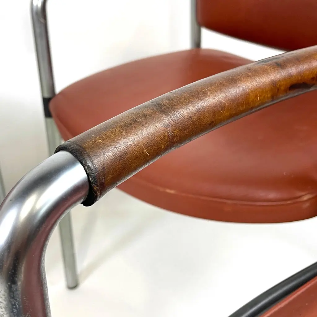 French Deco Modernist Leather And Steel Arm Chairs Machine Age 4 Available