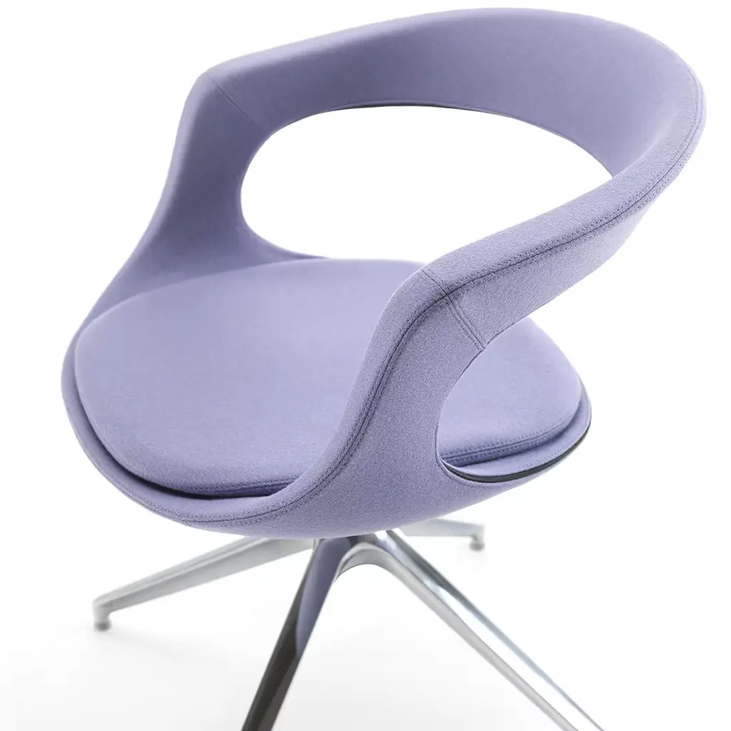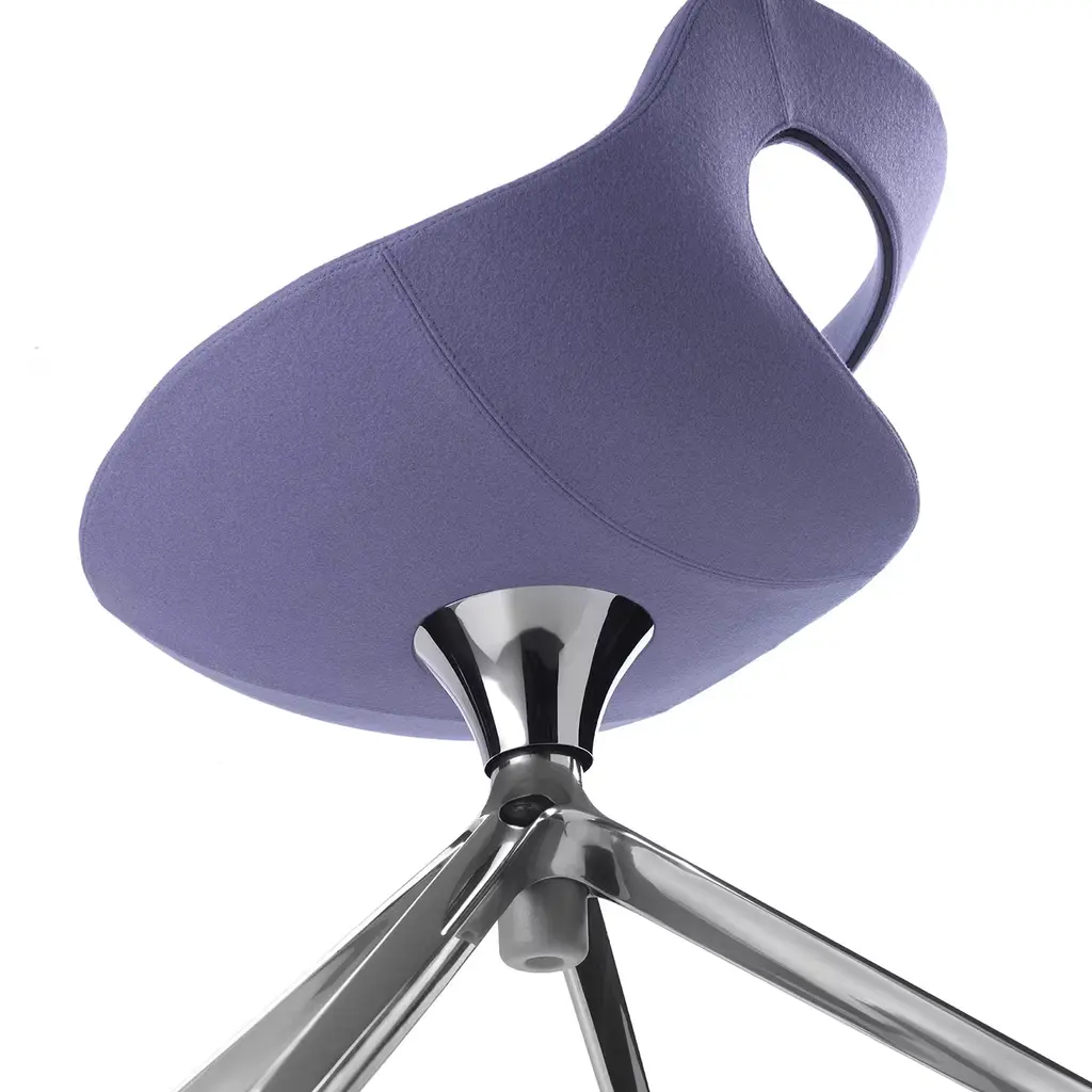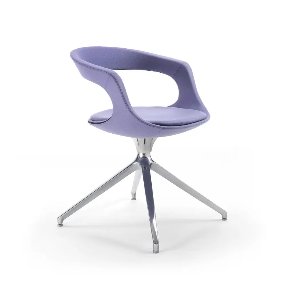 Designed by Stefano Bigi, the Frenchkiss collection is inviting and attractive. This chair stands out for being both elegant and comfortable, at the same time. It features a steel shell, chromed trestle base and polyurethane foam padding covered in Sheffield-gray felt. Other colors and finishings are also available, and the final price will be quoted upon order.