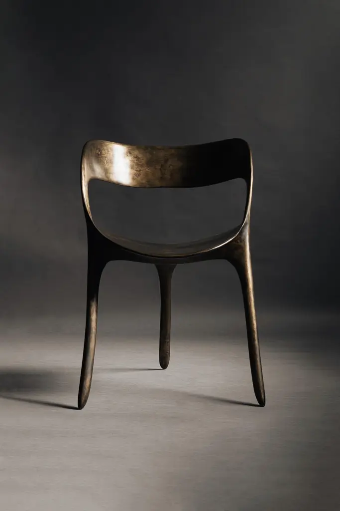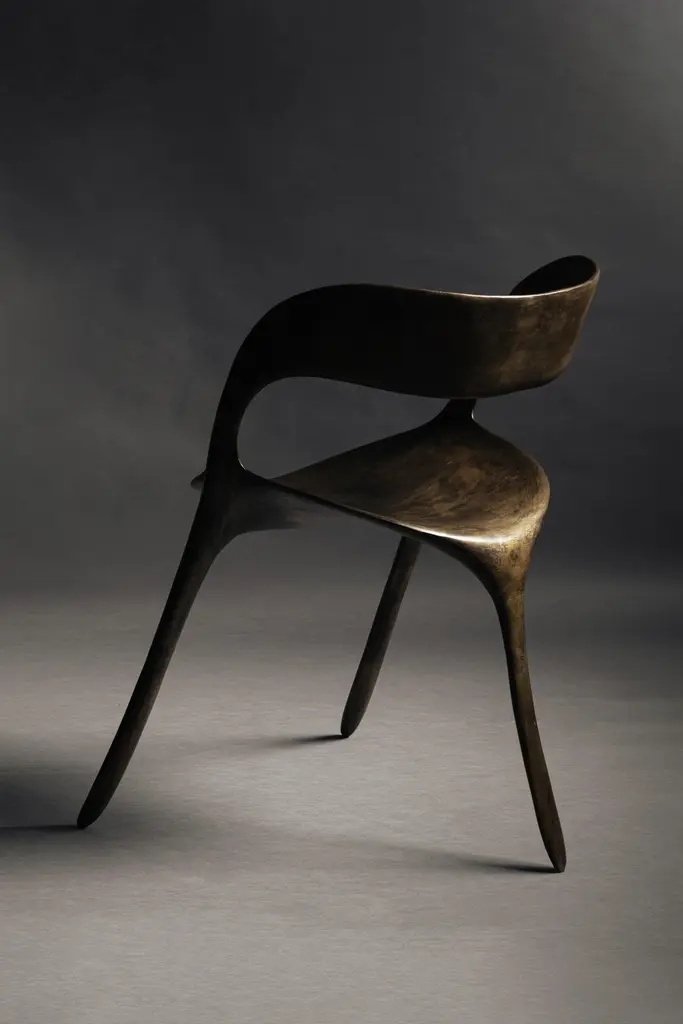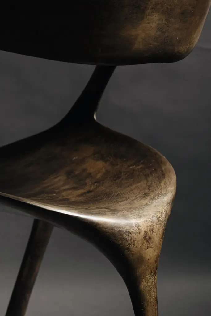 Frequency Chair by Sebastián AngelesMaterial: Bronze, Silver PatinaDimensions: W55 x D53 x H76 cmWeight: 28 kgAvailable in other finish.The collection includes designs inspired by patterns that represent different sound frequencies and their healing properties. For example, the 396 Hz frequency helps to release feelings of guilt and fear, this design is used to shape the curves of the chair, so its composition incorporates shapes that represent liberation and freedom drawn from patterns made in sound vizualizers composed of sand.Sebastián AngelesMexican Industrial Designer graduated from Universidad Anáhuac Mexico, currently serves as Creative Director of Dórica (Mexican Furniture Firm), but has collaborated with important brands and companies. His professional development began prematurely, so his career seems to be advanced for his age (26). Sebastián is currently the youngest designer to collaborate with Breuer (Trasiego 2020) and the Mexican brand Pirwi, (Desierto Collection, Nominated for Iconos del Diseño 2019 by Architectural Digest) and is signaled as a design promise by media such as Excélsior, Archdaily and Reforma.His work as a designer has led the brand Dórica to national and international exhibitions such as Designweek Mexico, AMD and Wanted Design in New York. Sebastián is part of Mass Collective (a creative union dedicated to experimentation), which has exhibited his work at the Tamayo Museum and at Ventura Futura in Milan. In his stage as a student Sebastian, was part of different calls, reaching the podiums of the most important competitions in the country. Dimueble 2016 (finalist) Dimueble 2017 (first place) A! Furniture Design (Silver) Ahec Design Awards Chair (2nd place). Sebastian’s design philosophy is very clear, and his products are characterized by having a strong conceptual background.