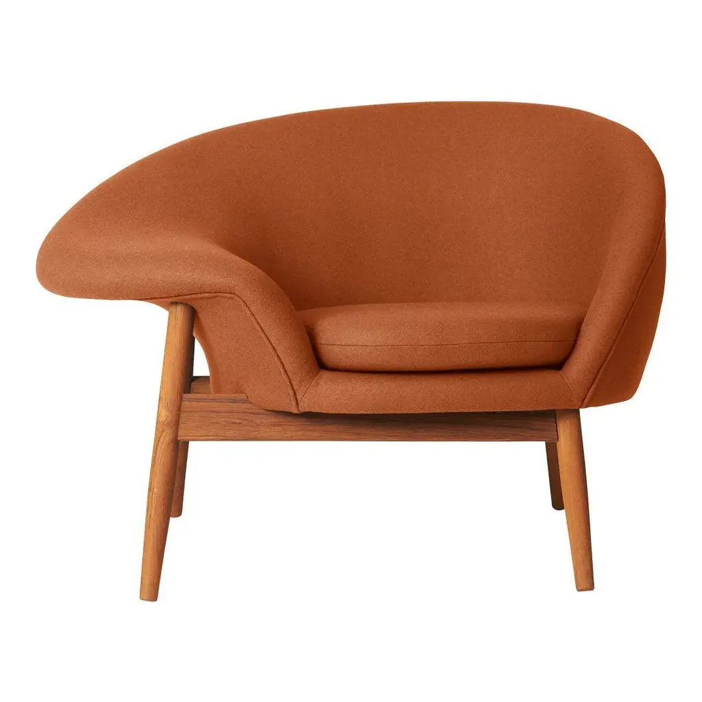 A unique asymmetrical armchair, designed by the highly acclaimed Danish architect, Hans Olsen in the 1950s. The Fried Egg armchair, in all its personality and capriciousness, is at last available for any design lovers who wish to add a bit of edginess to their homes in the shape of a unique item of designer furniture with roots in Danish Modernism. This roomy, comfortable chair was christened ‘Fried Egg', because that is what it looks like when viewed from above. The flat armrests invite you to swing your legs nonchalantly up on them, when you really feel like relaxing. As a tribute to the 1950s' adoration of colour and love of teak, one of the Fried Egg options is this elegant type of wood and upholstery in a range of stunning colours. You also have the option of playing with two-tone combinations, which are strongly reminiscent of a fried egg. Choose an exclusive furnishing fabric from Kvadrat in a carefully selected shade from the Warm Nordic universe. The frame is available in the highest quality teak.