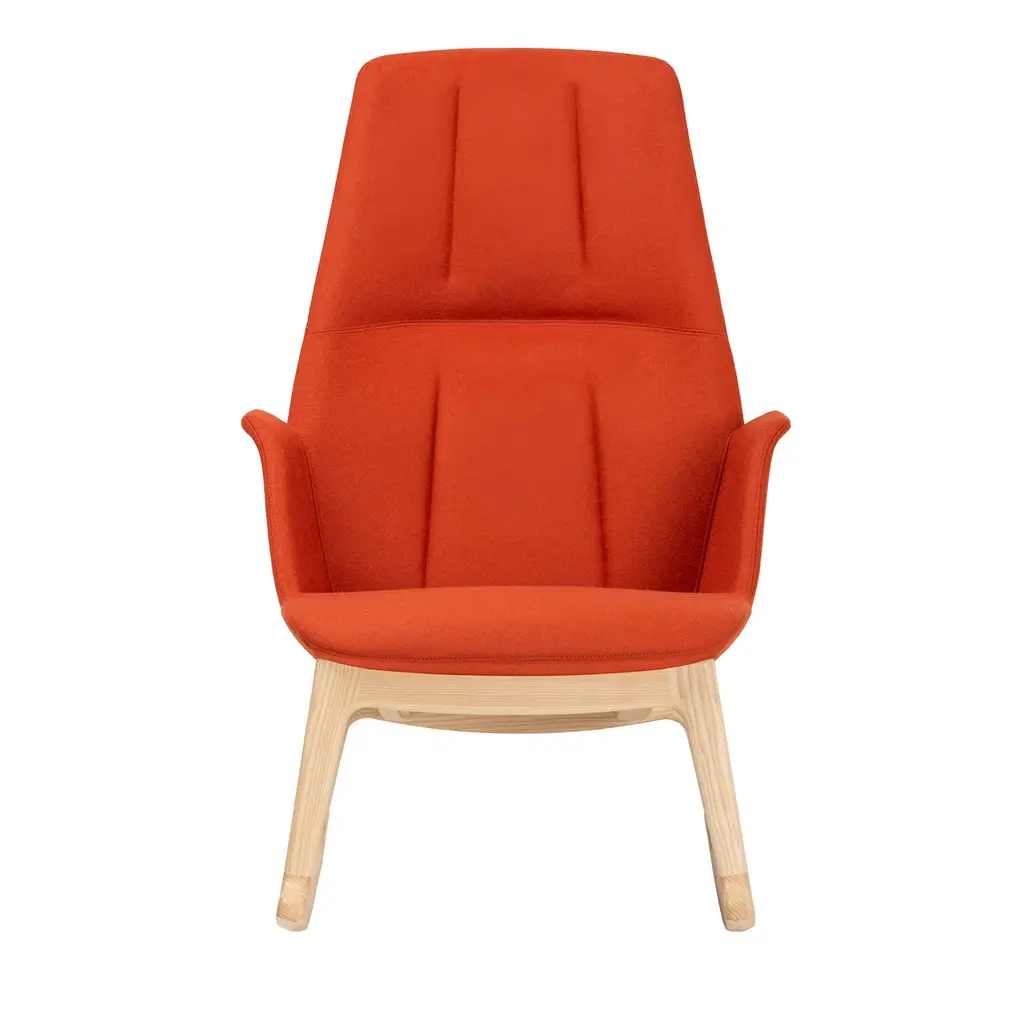 A unique asymmetrical armchair, designed by the highly acclaimed Danish architect, Hans Olsen in the 1950s. The Fried Egg armchair, in all its personality and capriciousness, is at last available for any design lovers who wish to add a bit of edginess to their homes in the shape of a unique item of designer furniture with roots in Danish Modernism. This roomy, comfortable chair was christened ‘Fried Egg', because that is what it looks like when viewed from above. The flat armrests invite you to swing your legs nonchalantly up on them, when you really feel like relaxing. As a tribute to the 1950s' adoration of colour and love of teak, one of the Fried Egg options is this elegant type of wood and upholstery in a range of stunning colours. You also have the option of playing with two-tone combinations, which are strongly reminiscent of a fried egg. Choose an exclusive furnishing fabric from Kvadrat in a carefully selected shade from the Warm Nordic universe. The frame is available in the highest quality teak.