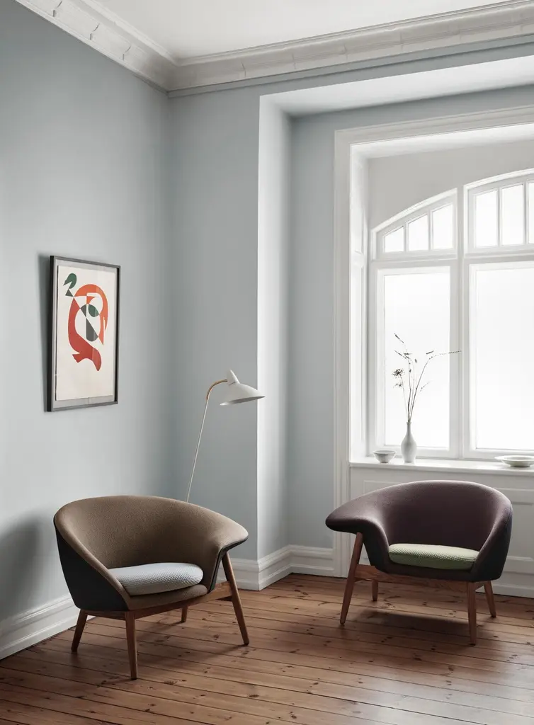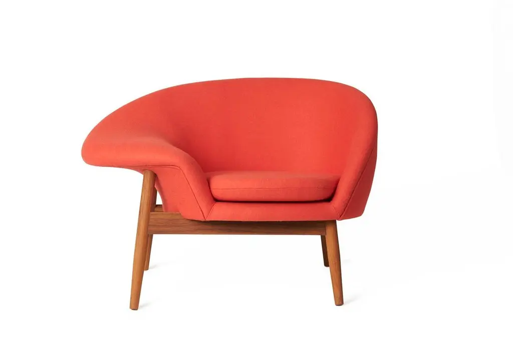 Fried egg left lounge chair apple red by Warm NordicDimensions: D99 x W68 x H 68 cmMaterial: textile or nubuck upholstery, solid oiled teakWeight: 25 kgAlso available in different colours and finishes. A unique asymmetrical lounge chair, designed by the highly acclaimed Danish architect, Hans Olsen in the 1950s. Fried Egg is also available in an exclusive anniversary edition with sustainable fabric, launched to celebrate the 100th birthday of Hans Olsen. The Fried Egg chair, in all its personality and capriciousness, is at last available for any design lovers who wish to add a bit of edginess to their homes in the shape of a unique item of designer furniture with roots in Danish Modernism. This roomy, comfortable chair was christened 'Fried Egg', because that is what it looks like when viewed from above. The flat armrests invite you to swing your legs nonchalantly up on them, when you really feel like relaxing. As a tribute to the 1950s' adoration of colour and love of teak, one of the Fried Egg options is this elegant type of wood and upholstery in a range of stunning colours. You also have the option of playing with two-tone combinations, which are strongly reminiscent of a fried egg. Choose an exclusive furnishing fabric from Kvadrat in a carefully selected shade from the Warm Nordic universe. The frame is available in the highest quality teak. The anniversary edition of Fried Egg is available in two beautiful options, both of which add an extra sensuousness to the Fried Egg chair by combining three different colours on the inside, outside, and on the cushion.Warm Nordic is an ambitious design brand anchored in Nordic design history and with a timeless, aesthetic style that inspires you to appreciate the little things in life. The company is the result of several years’ intense work on developing a new design brand with design history, quality and personality at its core. Warm Nordic boasts a colourful and charming universe of furniture, lamps and accessories full of personality. Our designs encapsulate the Nordic spirit, which in its essence is timeless, inclusive and warm.
