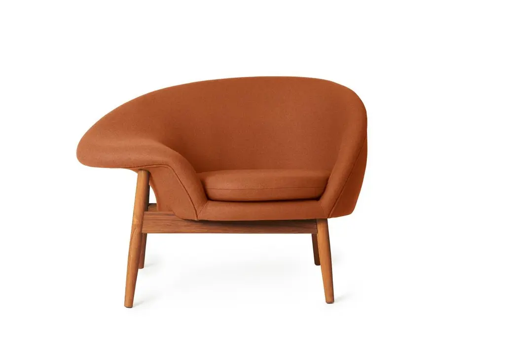 Fried egg left lounge chair caramel by Warm NordicDimensions: D99 x W68 x H 68 cmMaterial: Textile or nubuck upholstery, Solid oiled teakWeight: 25 kgAlso available in different colours and finishes. A unique asymmetrical lounge chair, designed by the highly acclaimed Danish architect, Hans Olsen in the 1950s. Fried Egg is also available in an exclusive anniversary edition with sustainable fabric, launched to celebrate the 100th birthday of Hans Olsen. The Fried Egg chair, in all its personality and capriciousness, is at last available for any design lovers who wish to add a bit of edginess to their homes in the shape of a unique item of designer furniture with roots in Danish Modernism. This roomy, comfortable chair was christened 'Fried Egg', because that is what it looks like when viewed from above. The flat armrests invite you to swing your legs nonchalantly up on them, when you really feel like relaxing. As a tribute to the 1950s' adoration of colour and love of teak, one of the Fried Egg options is this elegant type of wood and upholstery in a range of stunning colours. You also have the option of playing with two-tone combinations, which are strongly reminiscent of a fried egg. Choose an exclusive furnishing fabric from Kvadrat in a carefully selected shade from the Warm Nordic universe. The frame is available in the highest quality teak. The anniversary edition of Fried Egg is available in two beautiful options, both of which add an extra sensuousness to the Fried Egg chair by combining three different colours on the inside, outside, and on the cushion.Warm Nordic is an ambitious design brand anchored in Nordic design history and with a timeless, aesthetic style that inspires you to appreciate the little things in life. The company is the result of several years’ intense work on developing a new design brand with design history, quality and personality at its core. Warm Nordic boasts a colourful and charming universe of furniture, lamps and accessories full of personality. Our designs encapsulate the Nordic spirit, which in its essence is timeless, inclusive and warm.