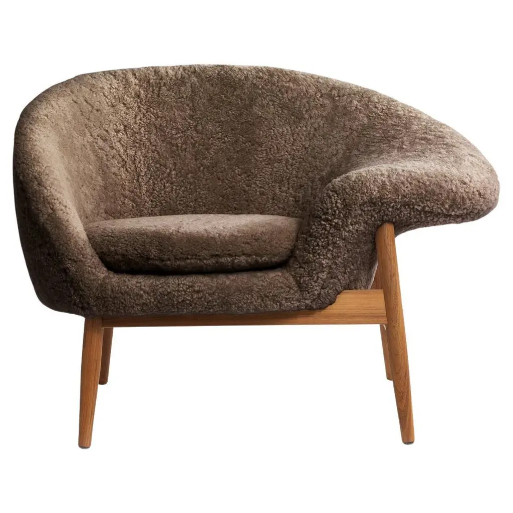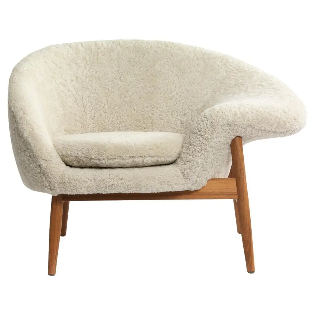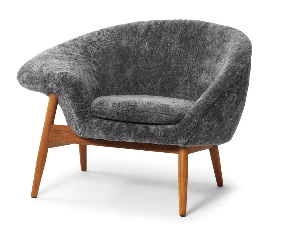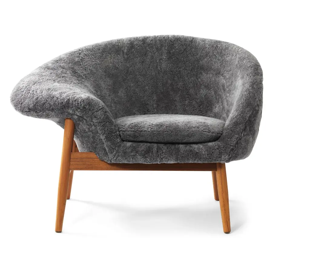 Fried egg left lounge chair sheepskin Scandinavian grey by Warm NordicDimensions: D99 x W68 x H 68 cmMaterial: sheepskin, textile or nubuck upholstery, solid oiled teakWeight: 25 kgAlso available in different colours and finishes. A unique asymmetrical lounge chair, designed by the highly acclaimed Danish architect, Hans Olsen in the 1950s. Fried Egg is also available in an exclusive anniversary edition with sustainable fabric, launched to celebrate the 100th birthday of Hans Olsen. The Fried Egg chair, in all its personality and capriciousness, is at last available for any design lovers who wish to add a bit of edginess to their homes in the shape of a unique item of designer furniture with roots in Danish Modernism. This roomy, comfortable chair was christened 'Fried Egg', because that is what it looks like when viewed from above. The flat armrests invite you to swing your legs nonchalantly up on them, when you really feel like relaxing. As a tribute to the 1950s' adoration of colour and love of teak, one of the Fried Egg options is this elegant type of wood and upholstery in a range of stunning colours. You also have the option of playing with two-tone combinations, which are strongly reminiscent of a fried egg. Choose an exclusive furnishing fabric from Kvadrat in a carefully selected shade from the Warm Nordic universe. The frame is available in the highest quality teak. The anniversary edition of Fried Egg is available in two beautiful options, both of which add an extra sensuousness to the Fried Egg chair by combining three different colours on the inside, outside, and on the cushion.Warm Nordic is an ambitious design brand anchored in Nordic design history and with a timeless, aesthetic style that inspires you to appreciate the little things in life. The company is the result of several years’ intense work on developing a new design brand with design history, quality and personality at its core. Warm Nordic boasts a colourful and charming universe of furniture, lamps and accessories full of personality. Our designs encapsulate the Nordic spirit, which in its essence is timeless, inclusive and warm.