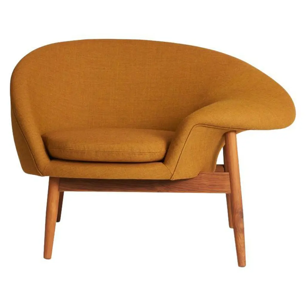 Fried Egg Right Lounge Chair Petrol Forest Green by Warm NordicDimensions: D99 x W68 x H 68 cmMaterial: Textile or nubuck upholstery, Solid oiled teakWeight: 25 kgAlso available in different colours and finishes. Please contact us.A unique asymmetrical lounge chair, designed by the highly acclaimed Danish architect, Hans Olsen in the 1950s. Fried Egg is also available in an exclusive anniversary edition with sustainable fabric, launched to celebrate the 100th birthday of Hans Olsen. The Fried Egg chair, in all its personality and capriciousness, is at last available for any design lovers who wish to add a bit of edginess to their homes in the shape of a unique item of designer furniture with roots in Danish Modernism. This roomy, comfortable chair was christened 'Fried Egg', because that is what it looks like when viewed from above. The flat armrests invite you to swing your legs nonchalantly up on them, when you really feel like relaxing. As a tribute to the 1950s' adoration of colour and love of teak, one of the Fried Egg options is this elegant type of wood and upholstery in a range of stunning colours. You also have the option of playing with two-tone combinations, which are strongly reminiscent of a fried egg. Choose an exclusive furnishing fabric from Kvadrat in a carefully selected shade from the Warm Nordic universe. The frame is available in the highest quality teak. The anniversary edition of Fried Egg is available in two beautiful options, both of which add an extra sensuousness to the Fried Egg chair by combining three different colours on the inside, outside, and on the cushion.Warm Nordic is an ambitious design brand anchored in Nordic design history and with a timeless, aesthetic style that inspires you to appreciate the little things in life. The company is the result of several years’ intense work on developing a new design brand with design history, quality and personality at its core. Warm Nordic boasts a colourful and charming universe of furniture, lamps and accessories full of personality. Our designs encapsulate the Nordic spirit, which in its essence is timeless, inclusive and warm.