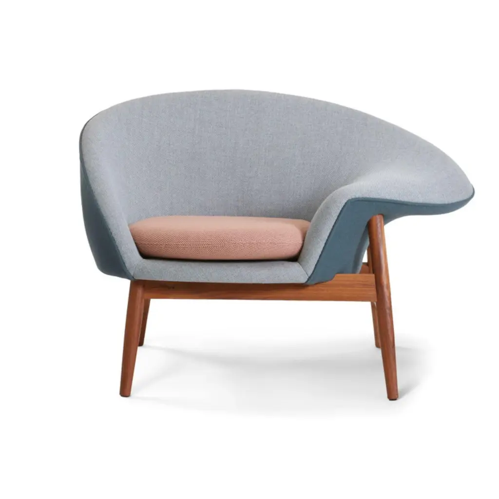 Fried egg right lounge chair petrol light green fresh peach by Warm NordicDimensions: D99 x W68 x H 68 cmMaterial: Textile or nubuck upholstery, Solid oiled teakWeight: 25 kgAlso available in different colours and finishes. A unique asymmetrical lounge chair, designed by the highly acclaimed Danish architect, Hans Olsen in the 1950s. Fried Egg is also available in an exclusive anniversary edition with sustainable fabric, launched to celebrate the 100th birthday of Hans Olsen. The Fried Egg chair, in all its personality and capriciousness, is at last available for any design lovers who wish to add a bit of edginess to their homes in the shape of a unique item of designer furniture with roots in Danish Modernism. This roomy, comfortable chair was christened 'Fried Egg', because that is what it looks like when viewed from above. The flat armrests invite you to swing your legs nonchalantly up on them, when you really feel like relaxing. As a tribute to the 1950s' adoration of colour and love of teak, one of the Fried Egg options is this elegant type of wood and upholstery in a range of stunning colours. You also have the option of playing with two-tone combinations, which are strongly reminiscent of a fried egg. Choose an exclusive furnishing fabric from Kvadrat in a carefully selected shade from the Warm Nordic universe. The frame is available in the highest quality teak. The anniversary edition of Fried Egg is available in two beautiful options, both of which add an extra sensuousness to the Fried Egg chair by combining three different colours on the inside, outside, and on the cushion.Warm Nordic is an ambitious design brand anchored in Nordic design history and with a timeless, aesthetic style that inspires you to appreciate the little things in life. The company is the result of several years’ intense work on developing a new design brand with design history, quality and personality at its core. Warm Nordic boasts a colourful and charming universe of furniture, lamps and accessories full of personality. Our designs encapsulate the Nordic spirit, which in its essence is timeless, inclusive and warm.