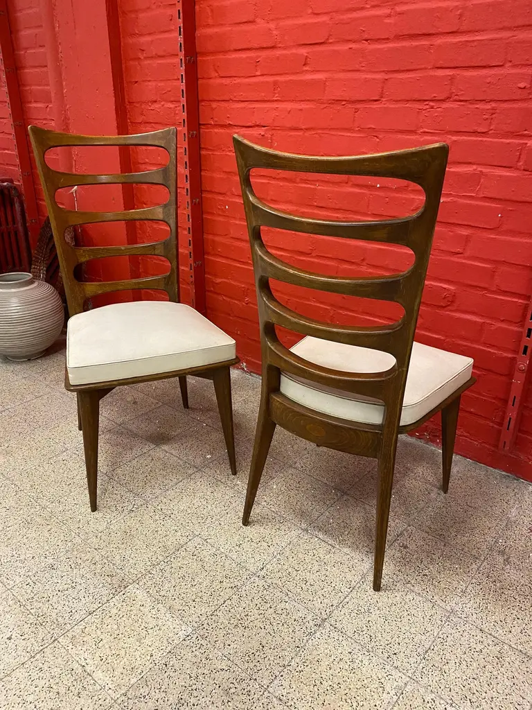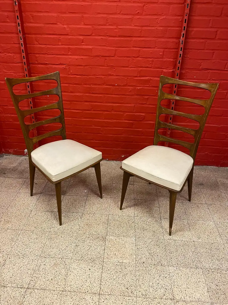 Gaston Poisson, 2 Elegant Chairs Circa 1950-1960
