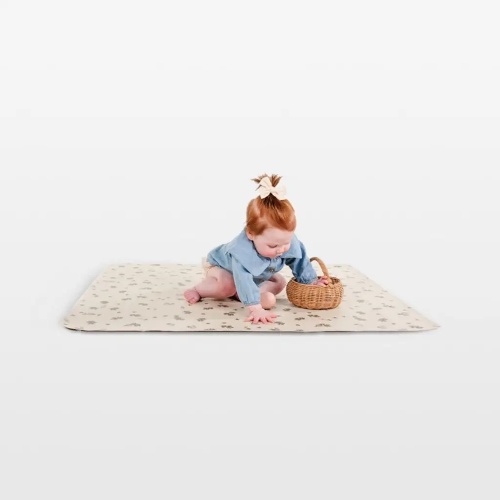 This hopping-cute Gathre x Peter Rabbit High Chair Mat is an essential for parents everywhere. Whether you're at home or on-the-go, you can use this portable mat under a high chair for easy mealtime cleanup or as a portable tummy time surface. Beautifully crafted of buttery-soft vegan leather on the top (with an adorable Peter Rabbit print) and durable flocked suede on the bottom, it's conveniently wipeable and water-resistant so you can keep it fresh, clean and ready to travel.