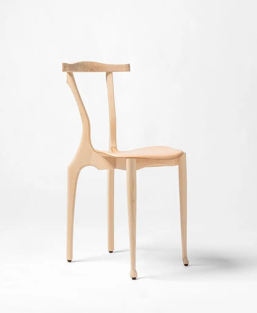 Gaulinetta natural chair by Oscar TusquetsDimensions: D40 x W52 x H 83 cm.Materials: ash woodThe Gaulino chair was designed in 1987. BD re-edited it, improving it in 2010. It’s probably one of the best designs by Oscar Tusquets. Even though its appearance is totally artesanal, it was his first real wooden industrial project, taking into consideration the sizes of the machines, so that they could make the turns that model the legs.The result is the image of a hand carved, slender sculpture. Some critic tried to see in it the admiration for the author Salvador Dalí, however, when Tusquets saw it finished, his thoughts were that the evident influences came from Antoni Gaudí, the most universal Catalonian architect, and from Carlo Mollino, a great Italian designer from the 50’s. That’s why he called the chair, Gaulino.BD introduced it back in 2016 to offer other uses than accompanying a table. Now it is presented in a limited edition, hand painted by its author and is part of the Art Editions catalogue. This is not the first time that Tusquets has personalised a seat for this collection. Several years ago, he painted 20 unique pieces. This is proof of authorship and are already part of private collections.In 1972, a group of young architects and designers from Barcelona created BD with the aim of producing and marketing furniture and other objects for our projects, with complete creative freedom and with a criterion that has turned out to be quite different from the norm at companies in the sector, regarding both the shape and function.
