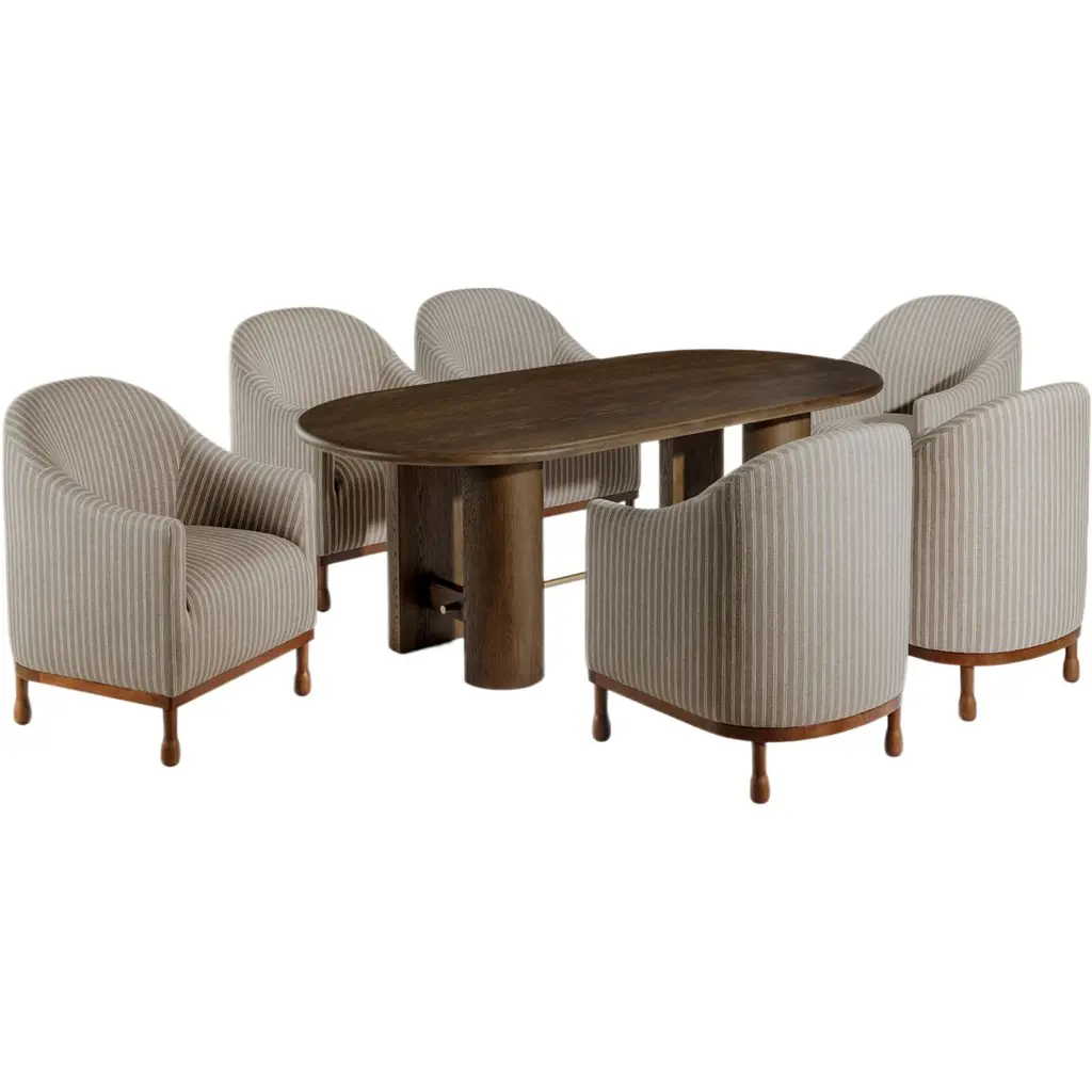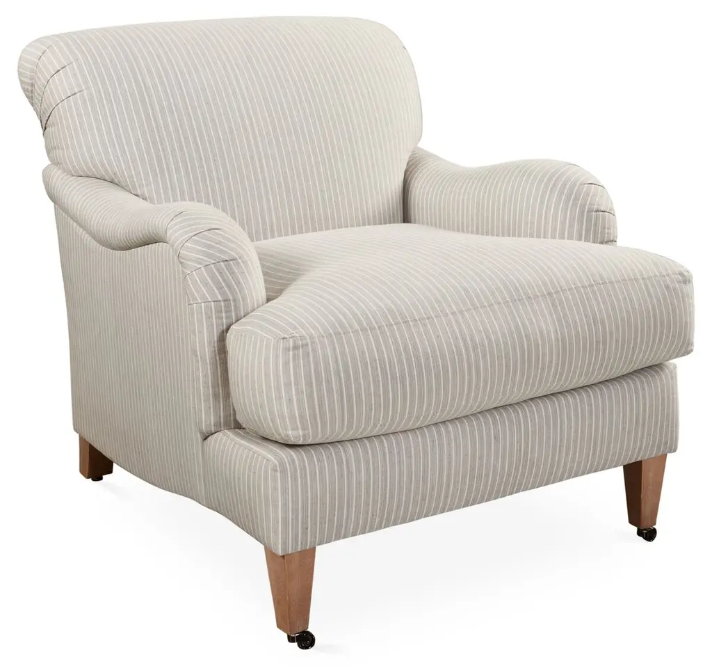 The Gavin captain chair is a masterpiece of design, featuring elegantly curved back and arms that provide both comfort and sophistication. Its wood base is adorned with intricately detailed legs, reflecting a touch of classic craftsmanship. Upholstered in a choice of timeless fabrics, this chair is sure to bring charm and elegance to any space.