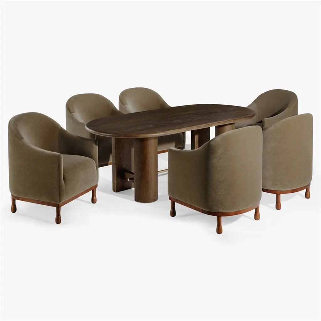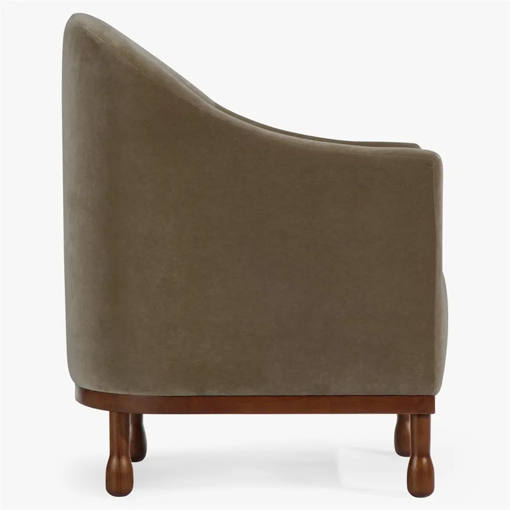 Gavin Updated Traditional Brown Velvet Wood Barrel Chair