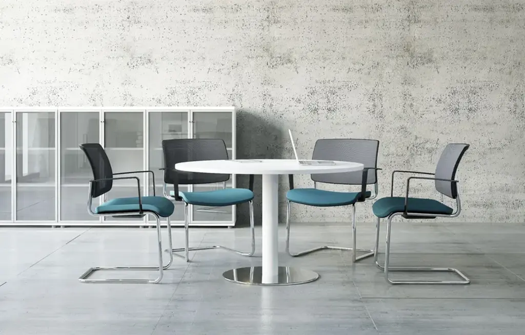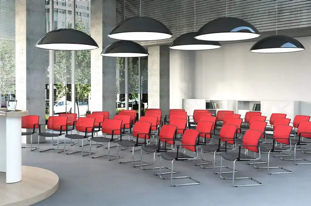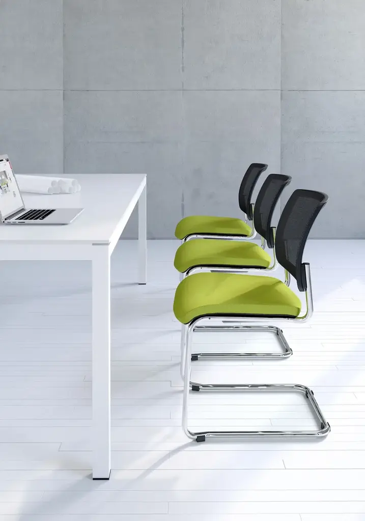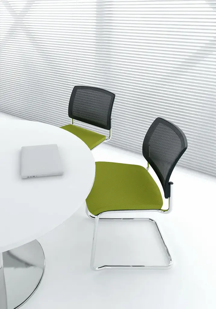 GAYA - Cantilever upholstered chair by MDD.GAYA - A comfortable chair available in 8 different colours and 2 different chromed bases. Depending on the user’s needs is also available with or without armrests.