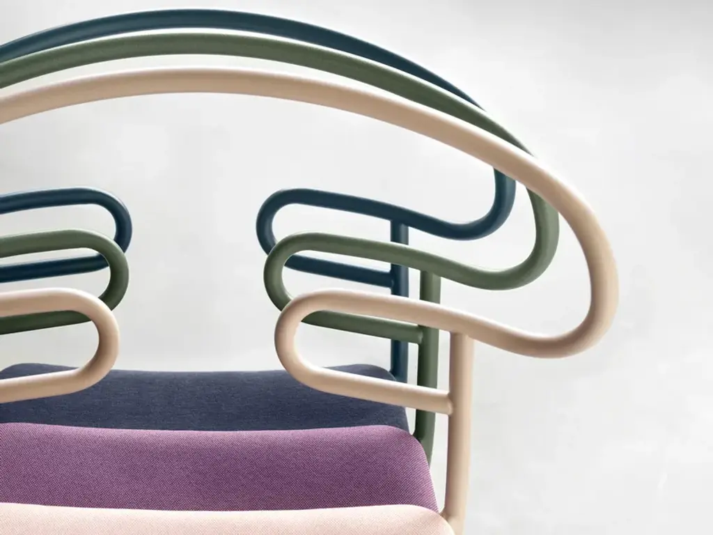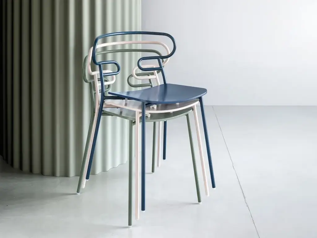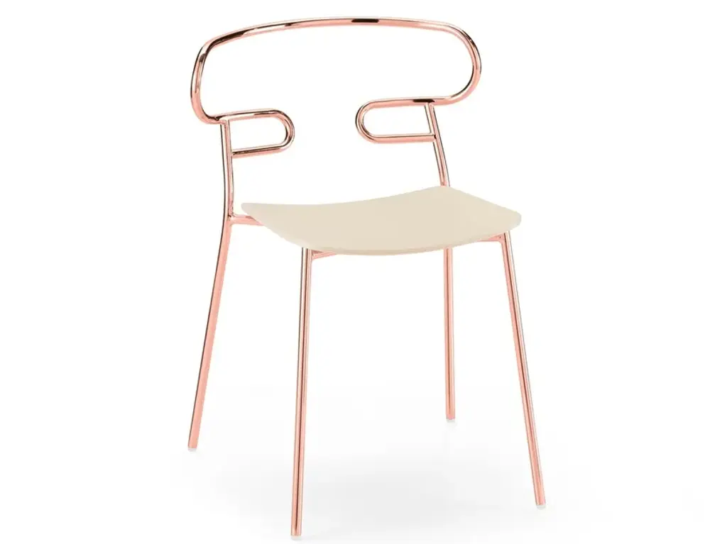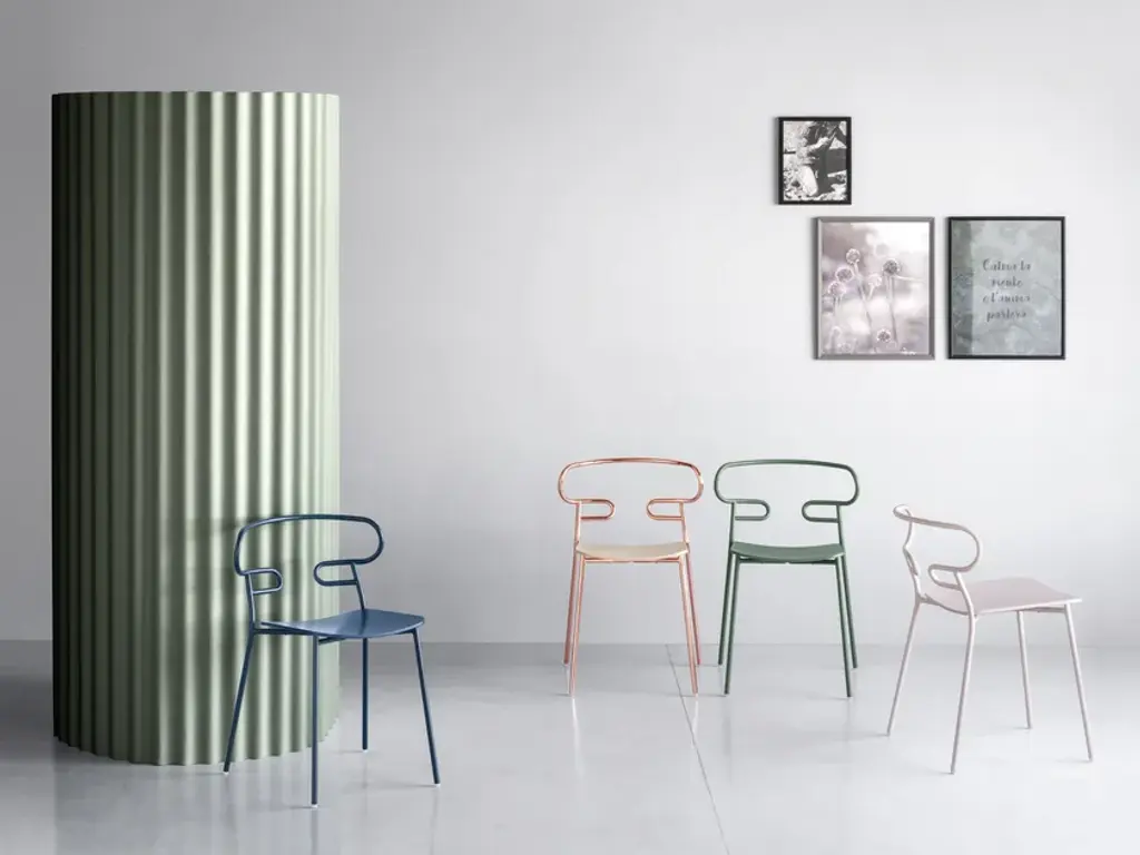 Metal base chair with lacquered wood or padded seat from the GENOA collection, designed by Cesare Ehr.