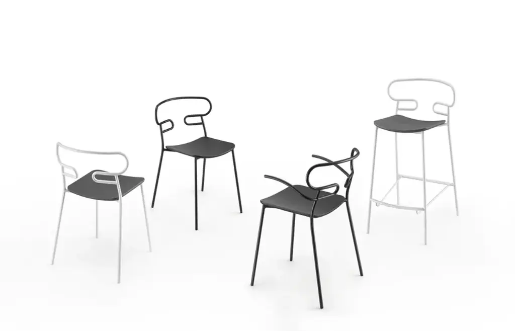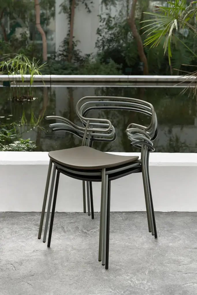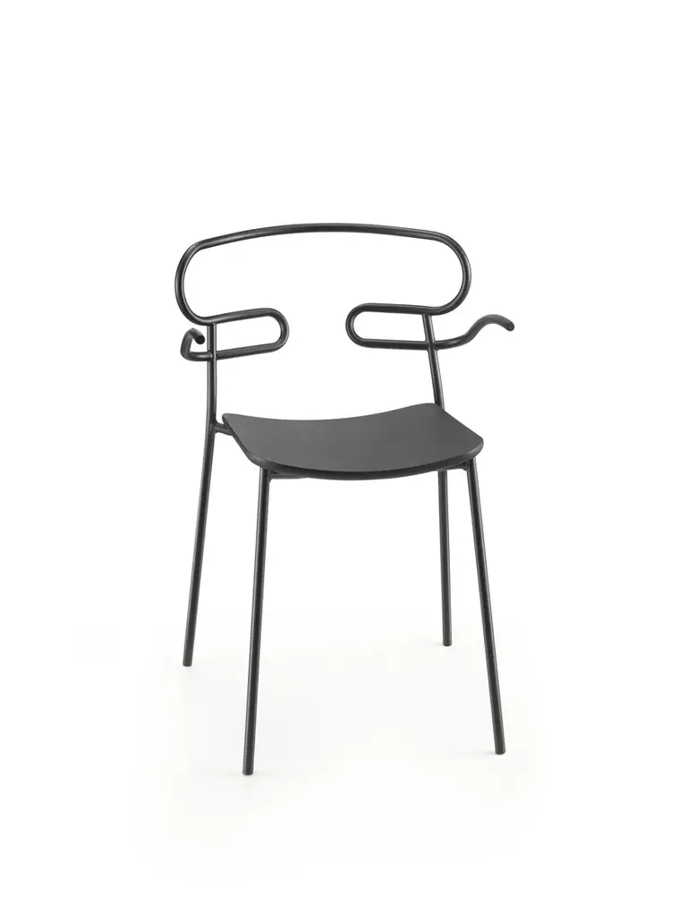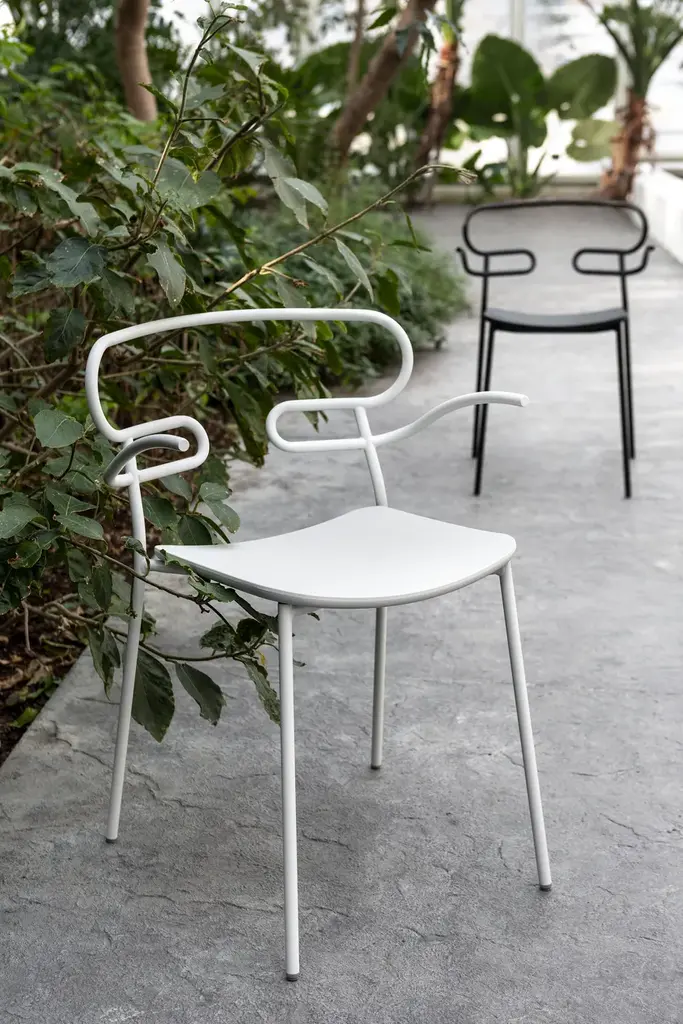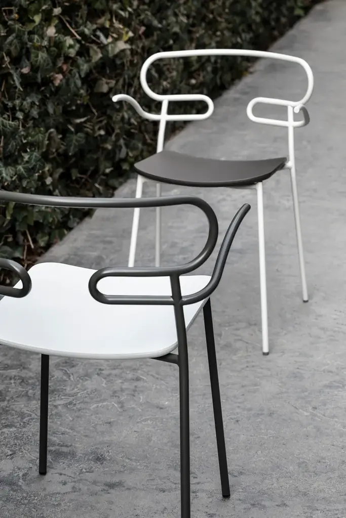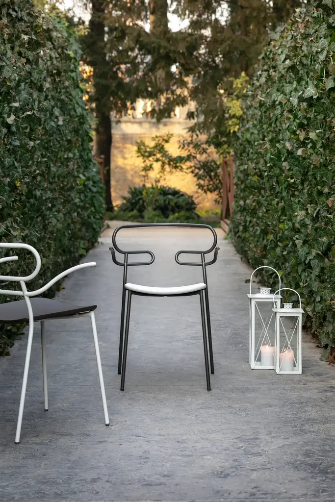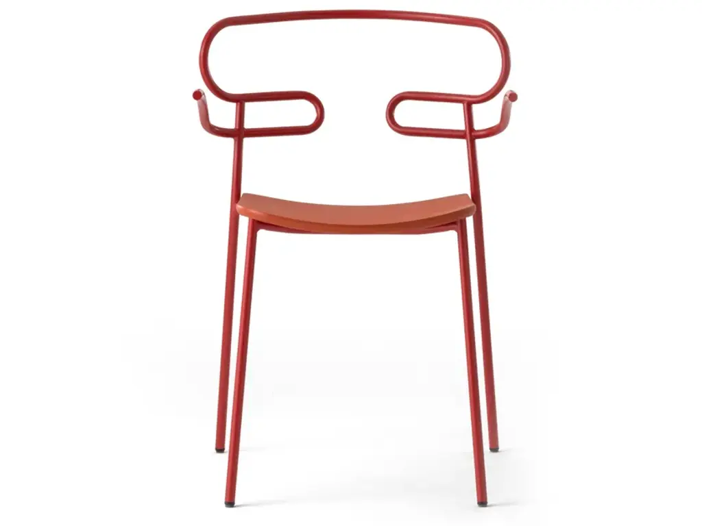 Metal base lacquered and PU seat and arms, for indoor and outdoor.Armchair for living, restaurant, bar, hotel, house,terrace.