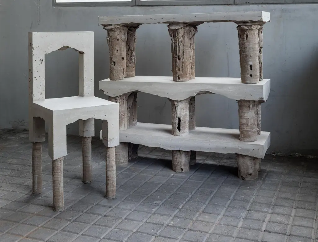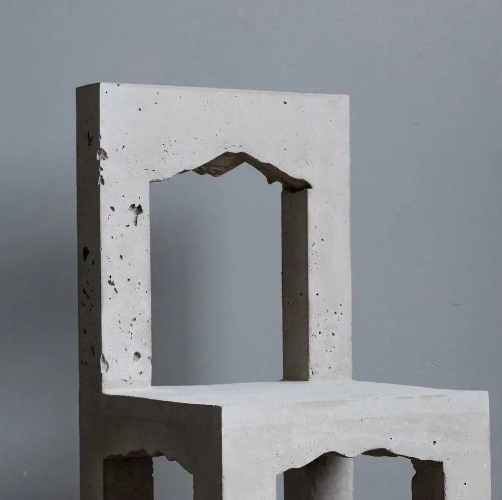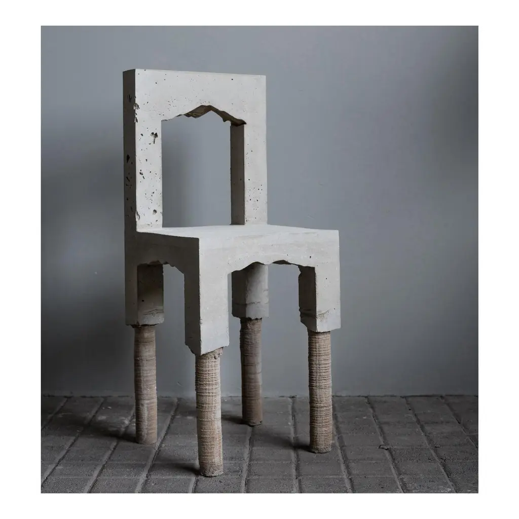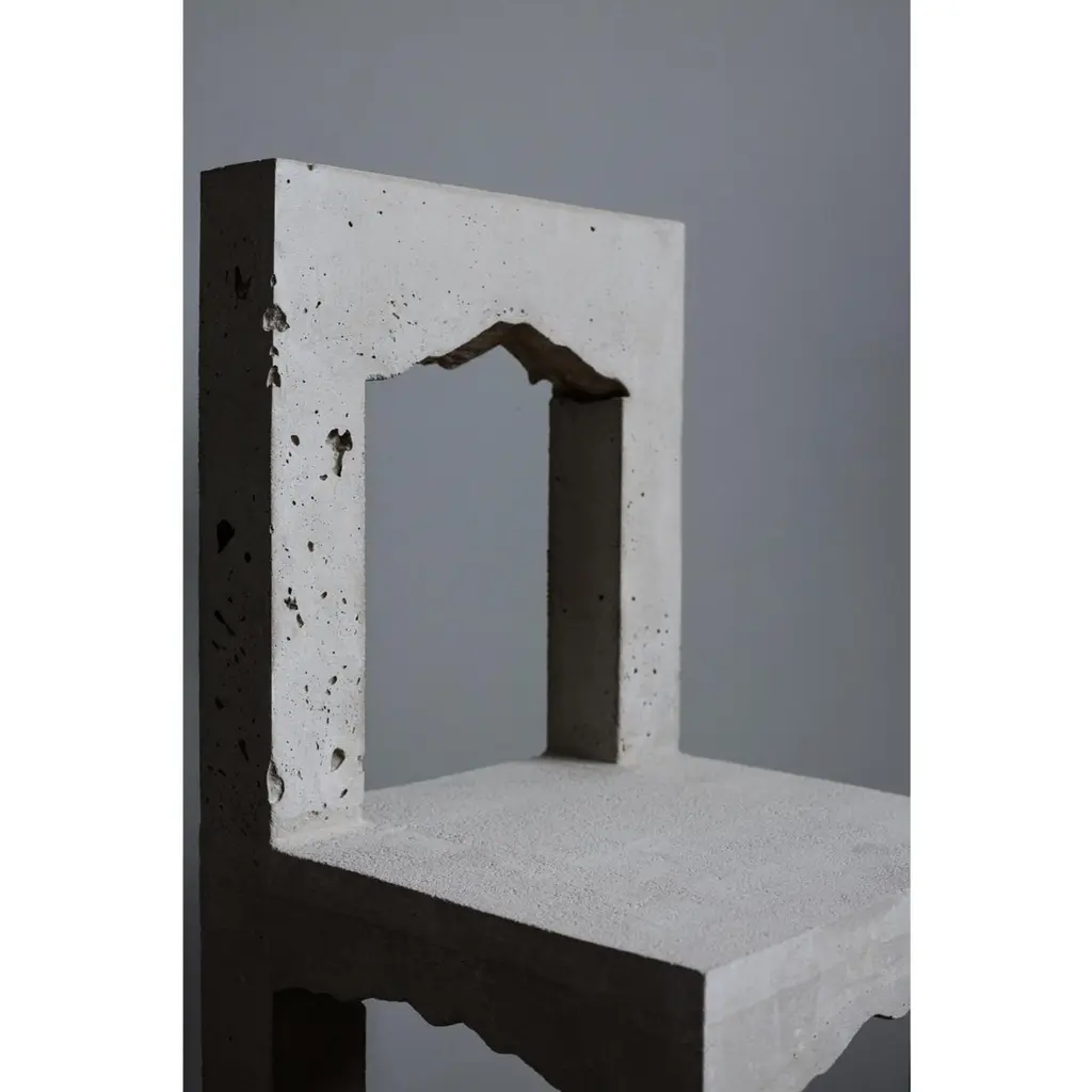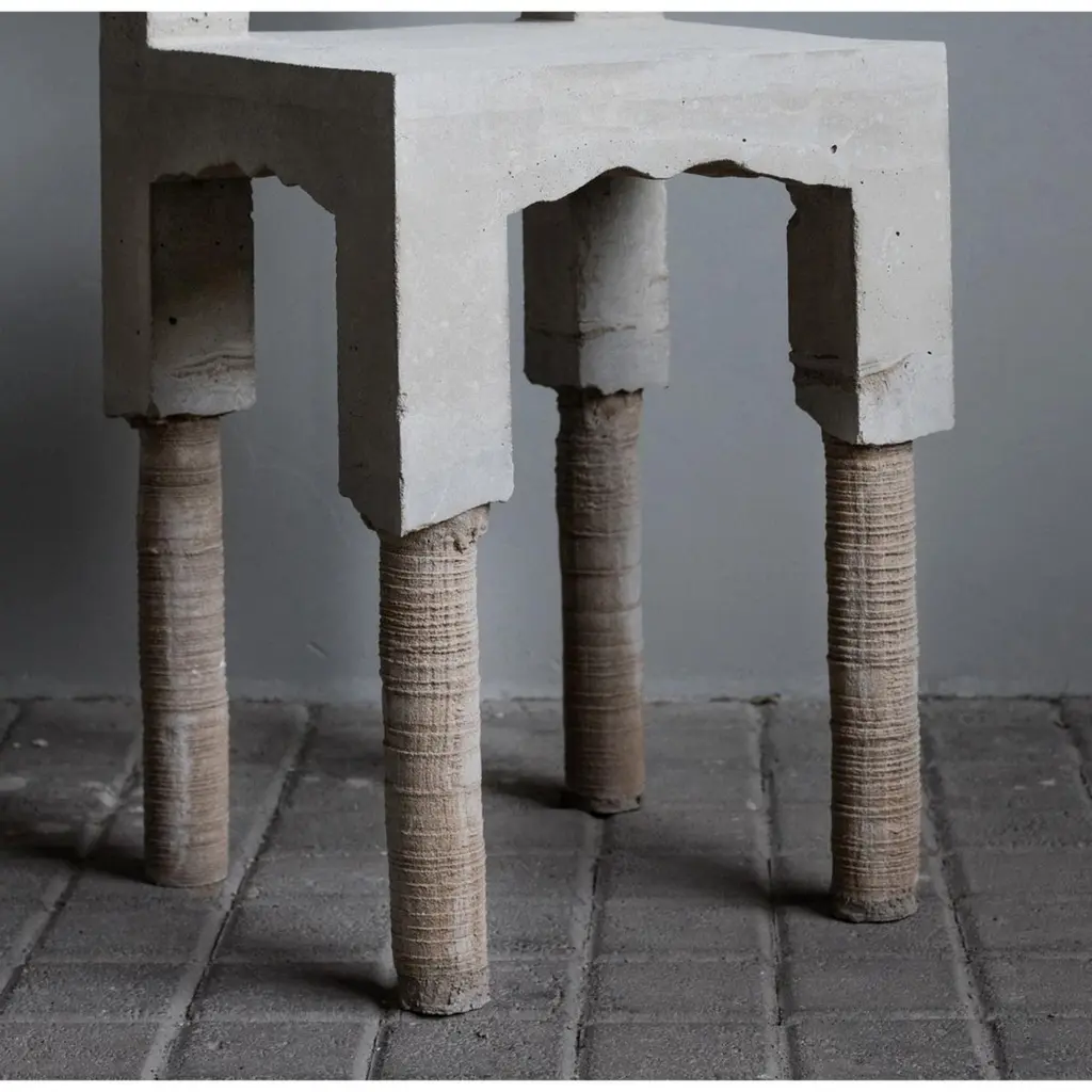 Geomorphic chair by Christian ZahrDimensions: W 38 x D 38 x H 80 cmMaterials: Cement- Sand- Water- Time.Each piece is handmade.Geomorphic Archeology: Unearthing the Ephemeral - Indoor primitive landscapes (furniture and objects). Sand carted. these concrete objects, an agglomeration of unpredictable and predesigned forms archetypal and fictional, archeological and geological, capture the complex and transformative times of the current turmoil. They are the outcome of an exploration of nature's microcosm and macrocosm during the Covid-19 lockdown. Taking advantage of the time slowed down handmade and made by nature (drops of water); they celebrate uniqueness in response to mass production, intimacy in our relation to our in-tenors and objects. Independence from the chain production suspended by the pandemic. Christian Zahr studied architecture at the Academie Libanaise des Beaux Arts, Beirut, Lebanon. After graduating in 2003, he interned at Ateliers Jean Nouvel Paris (2004) before going back to Beirut and working for renowned Lebanese architectural firms. In 2012 he founded Studio Christian Zahr, where he develops his practice as an independent architect, landscape designer, object designer and artist. Moving between these scales allows him to blur the boundaries between these different realms with the obsession to create a new language. Zahr’s work as a designer was showcased in several exhibitions such as Post-it in La Galerie de L’Architecture - Paris (2004), Beirut Design Week in Beyt Beirut Museum (2018), 1000 Vases in Dubai Design District (2019).
