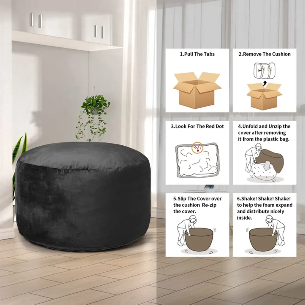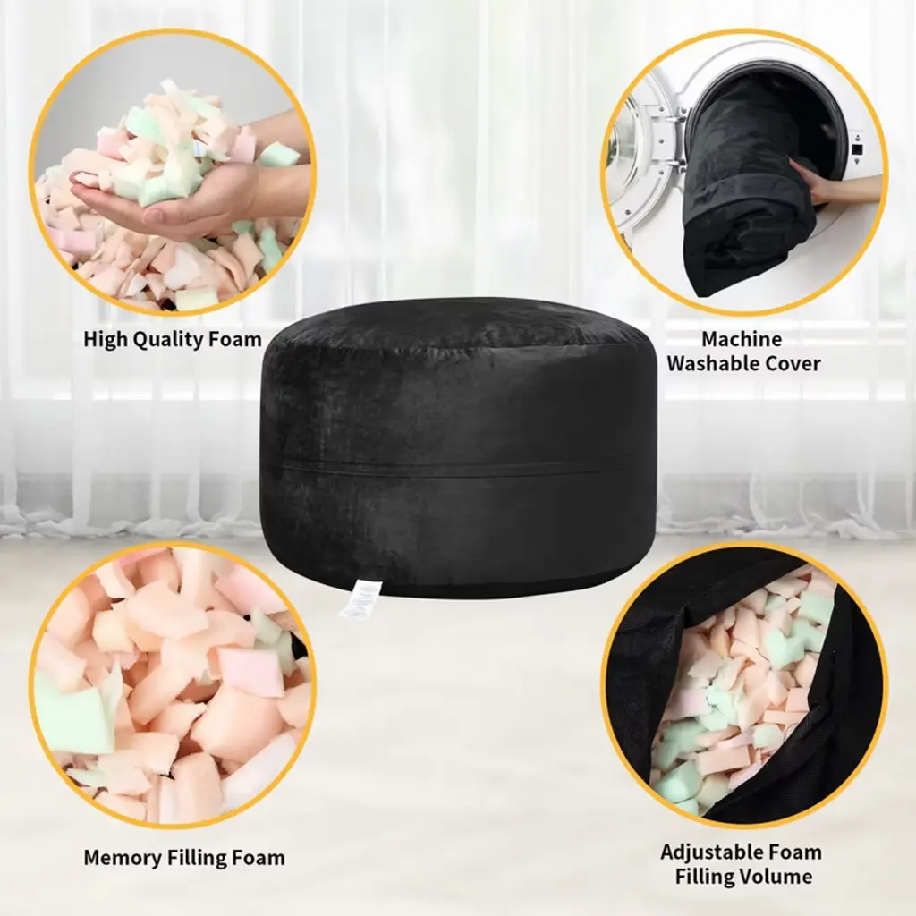 This plush bean bag features supportive memory foam filling for superior comfort and shape retention. Covered in soft, stain-resistant velvet with reinforced stitching, it’s perfect for adults and kids alike. Measuring 48"x48"x28", it easily expands for cozy lounging, gaming, or studying.