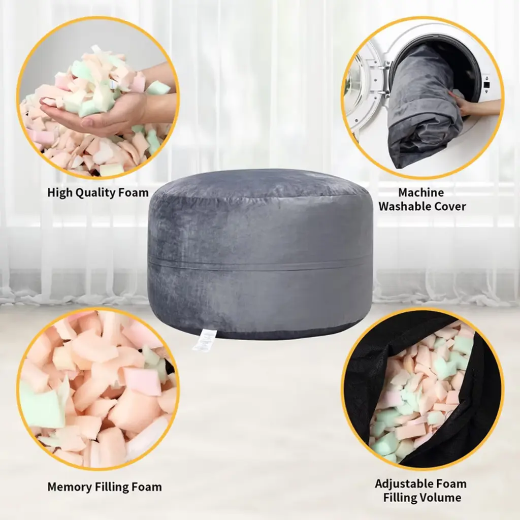 This plush bean bag features supportive memory foam filling for superior comfort and shape retention. Covered in soft, stain-resistant velvet with reinforced stitching, it’s perfect for adults and kids alike. Measuring 48"x48"x28", it easily expands for cozy lounging, gaming, or studying.