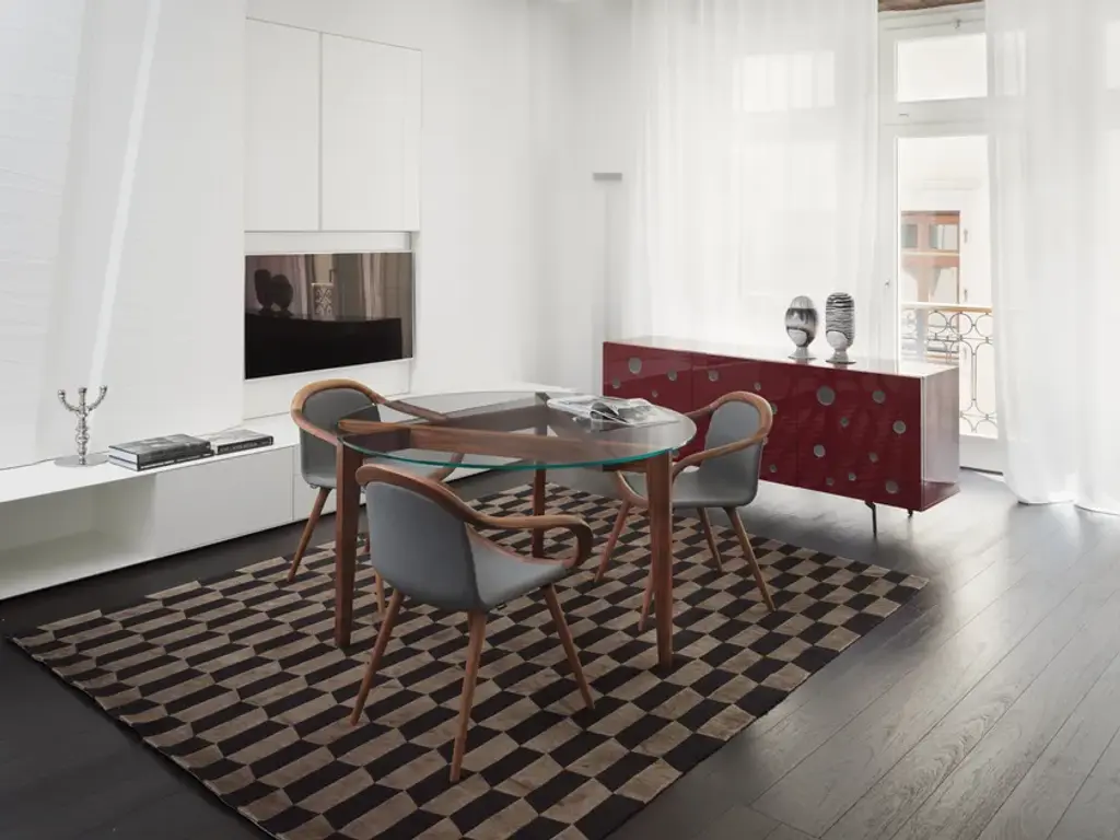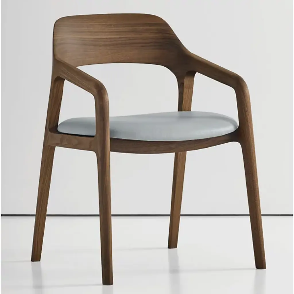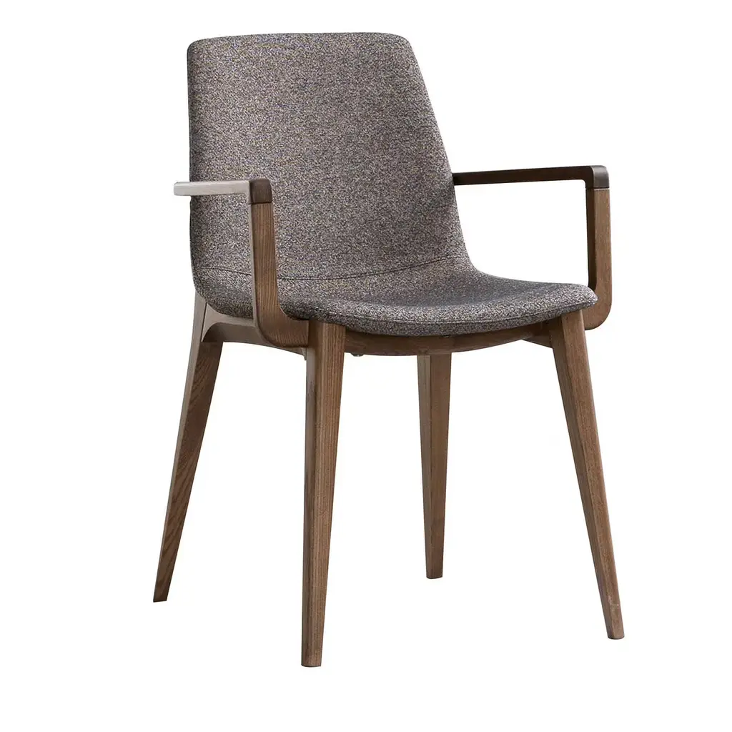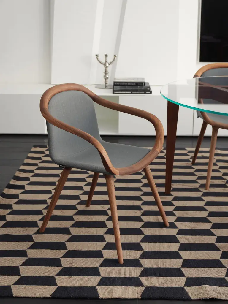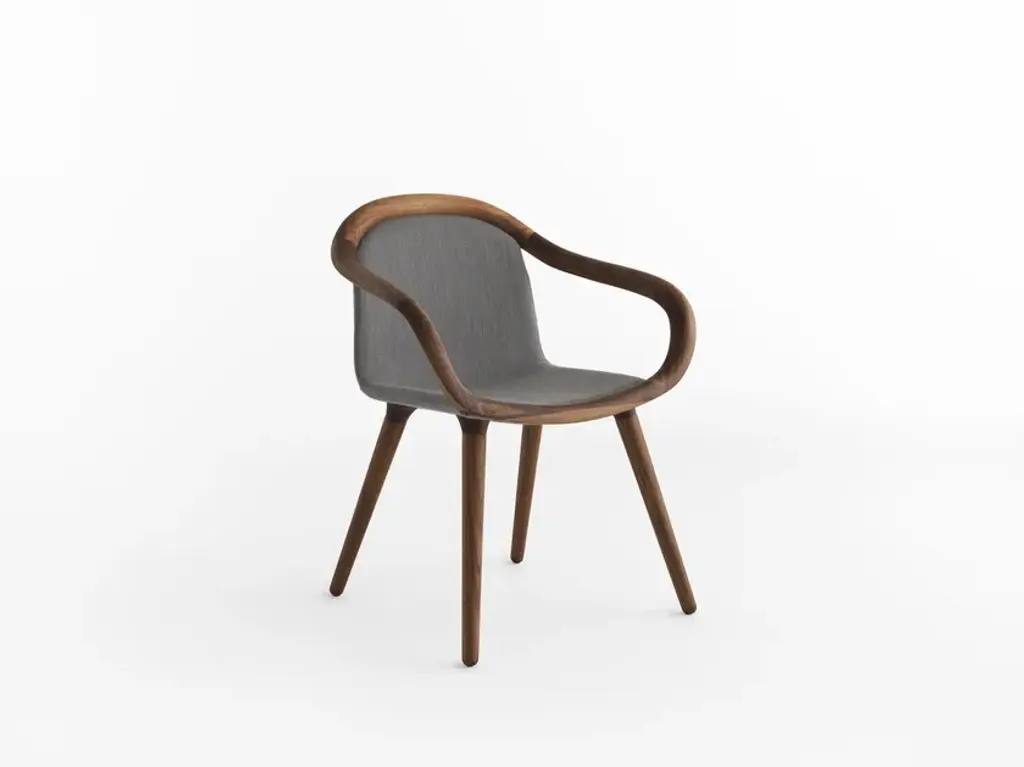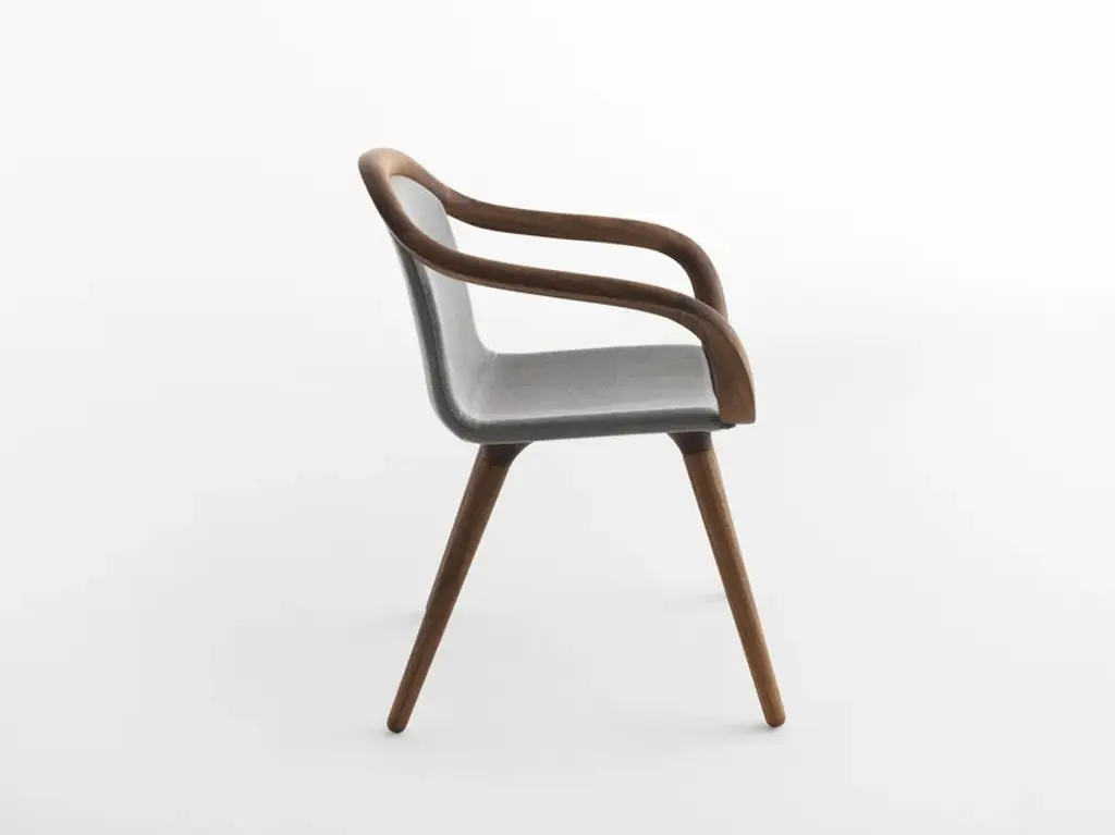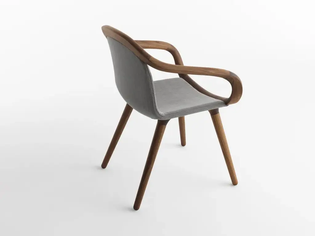 Ginevra is a solid wood armchair made with a complex technological process, the result of historical construction experience that combines considerable competence skills and a deep knowledge of materials. Ginevra is distinguished by the incomparable beauty of the design and the anatomical seating comfort. Base: Walnut. Covering: fabric | leather.