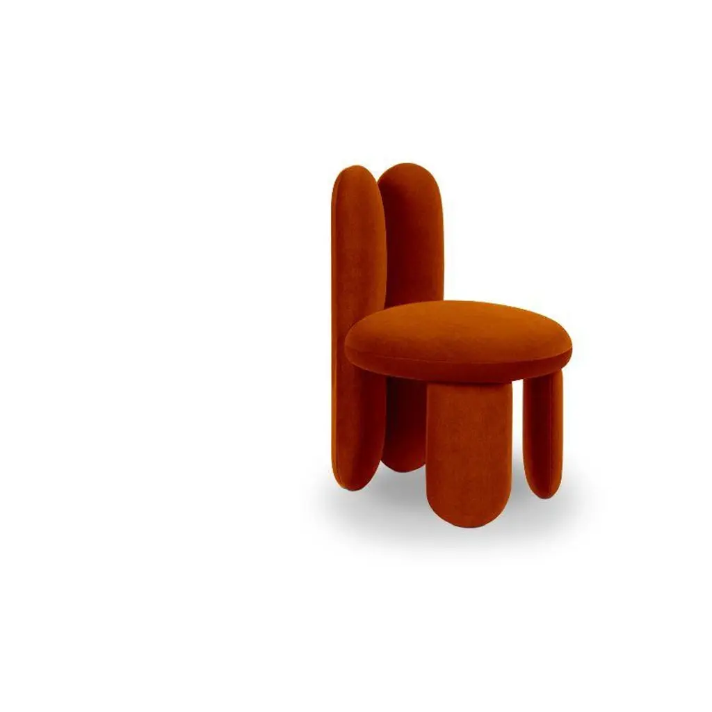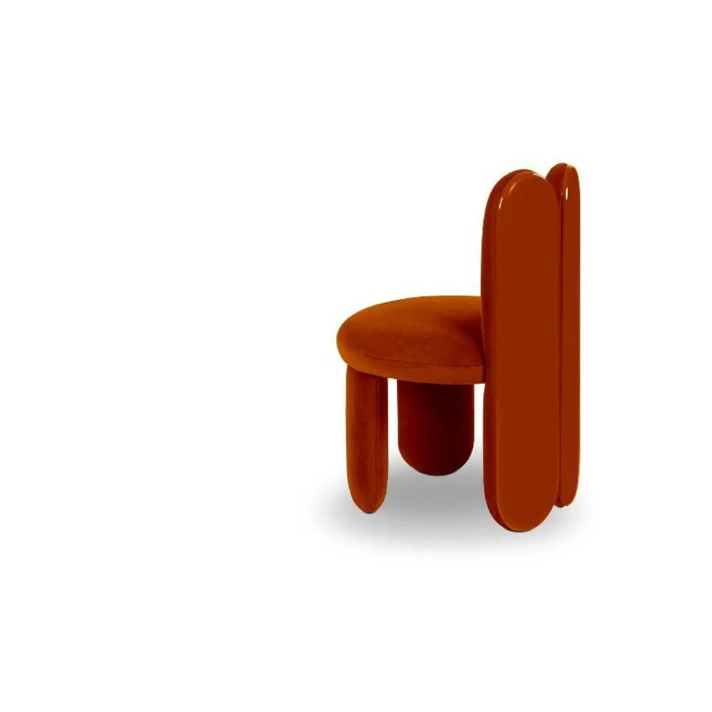 Glazy chair, gentle 373 by Royal StrangerDimensions: W 58 D 58 H 85 cm SH 50 SD 46 cmMaterials: UpholsteryAlso available: Upholstery in all Royal Stranger’s fabric collection, & COM (Client’s Own Material). Base Available lacquered in all NCS/RAL colors, or in gold, copper and silver leaf, with glossy or matte finishStep into a world of eye candy furniture with Glazy Chair. There is a groovy feeling to the rounded lines defining its round seat, and biscuit-shaped backrest and legs. An irresistible furniture piece where velvety upholstery playfully meets a glazed back finishing. Glazy Chair is the icing on the cake of your interior designs.Royal Stranger is an exclusive furniture brand determined to bring you the best unique pieces of art and design.Fusing design, art, and the best craftsmanship, they strive to deliver the best state of handmade art furniture. The design team works every day to create meaningful products that represent values such as passion, function, aesthetics, and know-how. Values that are meant to represent Royal Stranger’s DNA. This dedication is present at all stages of production and the combination of craftsmanship and innovative design contributes toour final purpose: To produce certified high-quality products, made with passion and expertise and using royal materials such as gold leaves, rich woods, and high-quality lacquers.It was in 2013, as architects, that Sofia Santos & Rui Santos started to push the boundaries of innovation in several retail design concepts for some of the best stores in Portugal. This resolution has always been present in their work, and that’s how the brand was born.