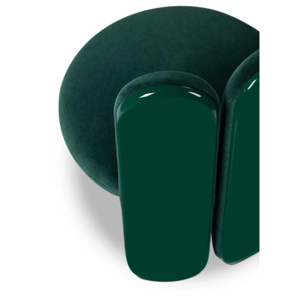 Glazy chair, gentle 973 by Royal StrangerDimensions: W 58 D 58 H 85 cm SH 50 SD 46 cmMaterials: UpholsteryAlso available: Upholstery in all Royal Stranger’s fabric collection, & COM (Client’s Own Material). Base Available lacquered in all NCS/RAL colors, or in gold, copper and silver leaf, with glossy or matte finishStep into a world of eye candy furniture with Glazy Chair. There is a groovy feeling to the rounded lines defining its round seat, and biscuit-shaped backrest and legs. An irresistible furniture piece where velvety upholstery playfully meets a glazed back finishing. Glazy Chair is the icing on the cake of your interior designs.Royal Stranger is an exclusive furniture brand determined to bring you the best unique pieces of art and design.Fusing design, art, and the best craftsmanship, they strive to deliver the best state of handmade art furniture. The design team works every day to create meaningful products that represent values such as passion, function, aesthetics, and know-how. Values that are meant to represent Royal Stranger’s DNA. This dedication is present at all stages of production and the combination of craftsmanship and innovative design contributes toour final purpose: To produce certified high-quality products, made with passion and expertise and using royal materials such as gold leaves, rich woods, and high-quality lacquers.It was in 2013, as architects, that Sofia Santos & Rui Santos started to push the boundaries of innovation in several retail design concepts for some of the best stores in Portugal. This resolution has always been present in their work, and that’s how the brand was born.