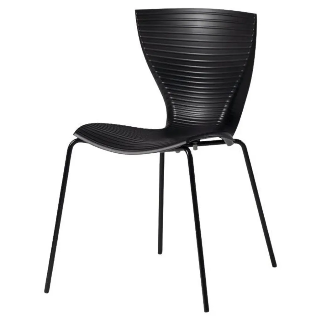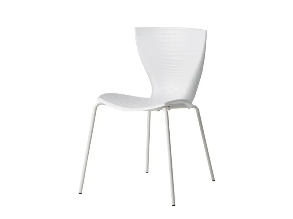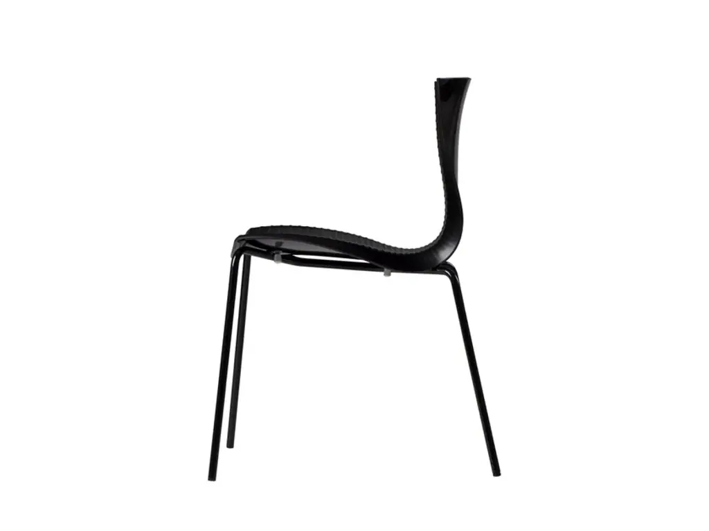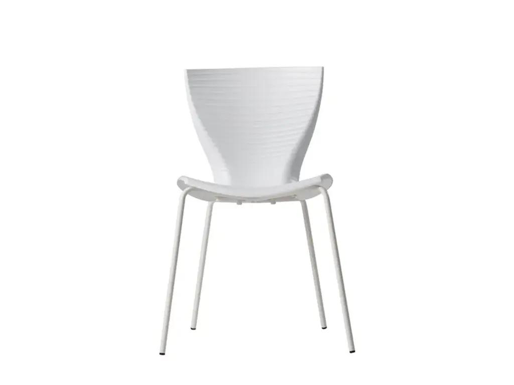 Marc Sadler introduces a new material into Slide production and he creates Gloria. Gloria is the first chair with a seat in polypropylene, supported by a steel chassis. Gloria is light, stackable and functional. The chair is an unusual design product, thanks to thiny shape and to the texture that characterized the whole seat. Gloria is ideal especially to indoor settings, both in contract and private houses: it gives a touch of contemporary furnishing.Frame in color coordinated with the seat