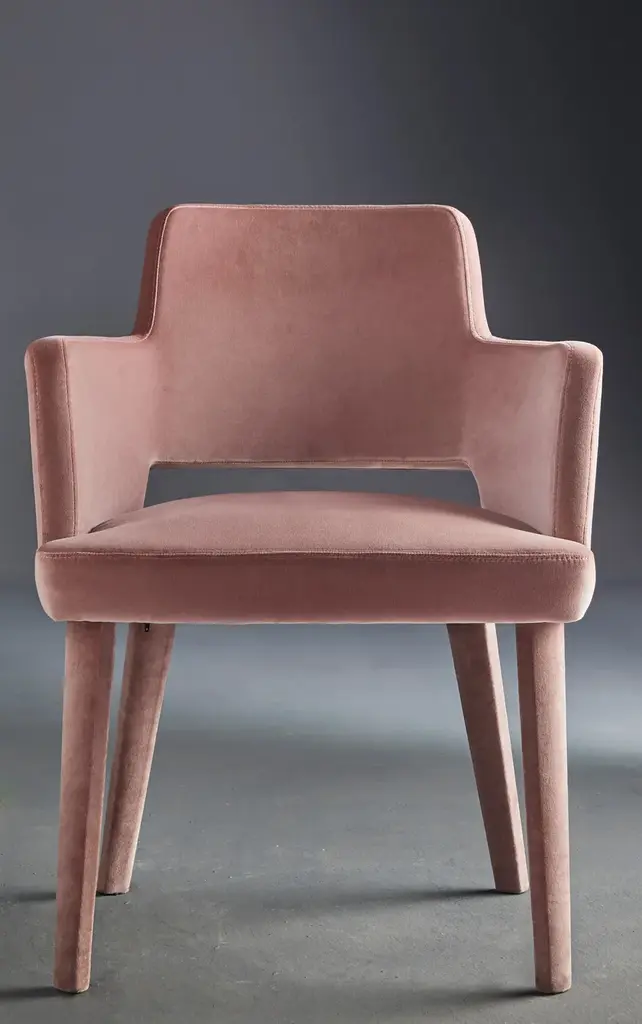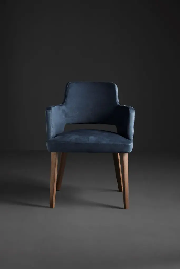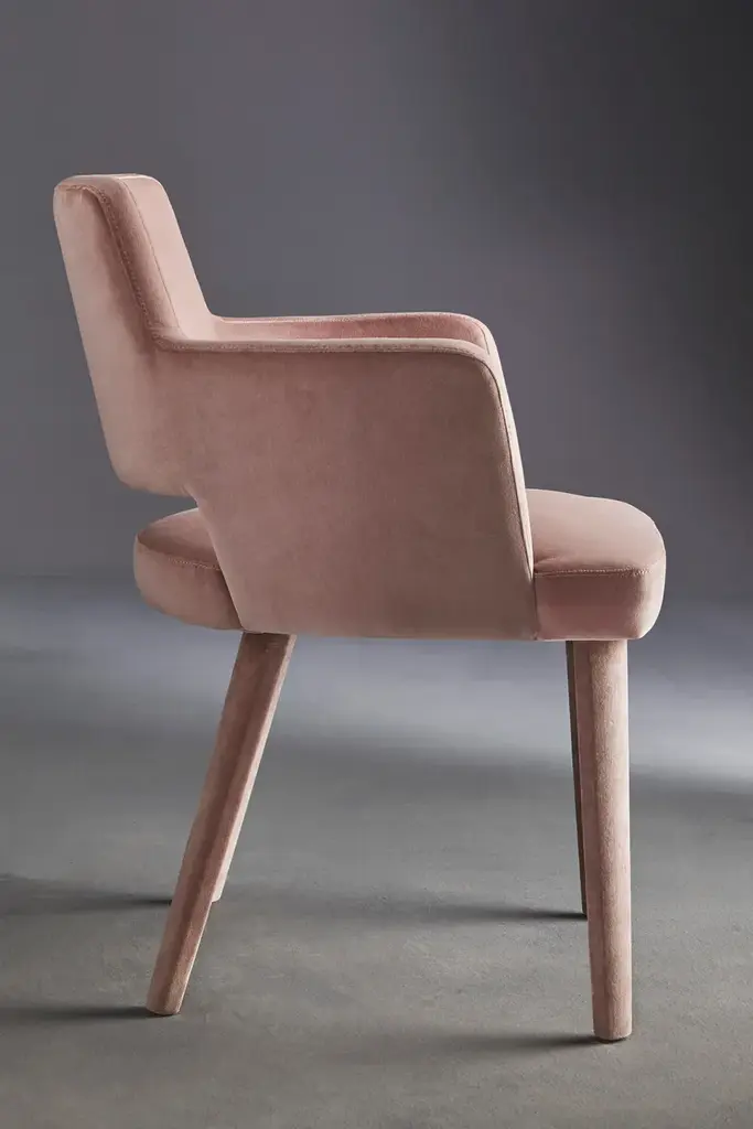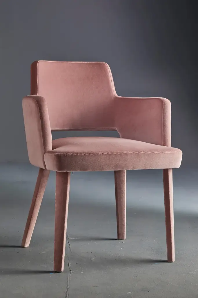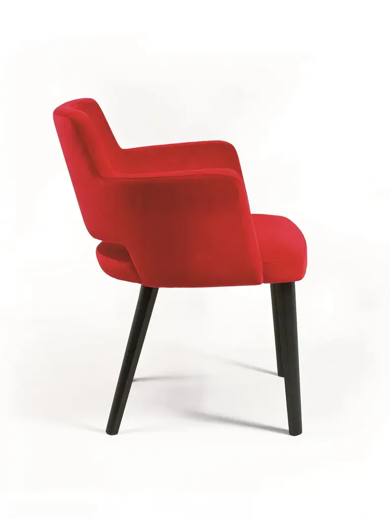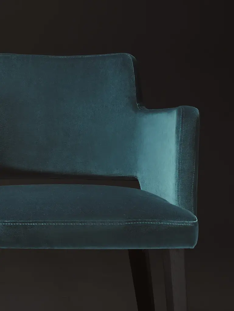 Grace.p is an armchair with natural or lacquered oak wood frame with seat and back padded and upholstered with fabric, artificial leather or real leather. Grace.p is entirely upholstered in its Lux version.The sumptuous reference to contemporary elegance. Grace armchair and chair, with their appeal and attention to detail of their workings, are the ideal proposal for private and collective environments of class and elegance.
