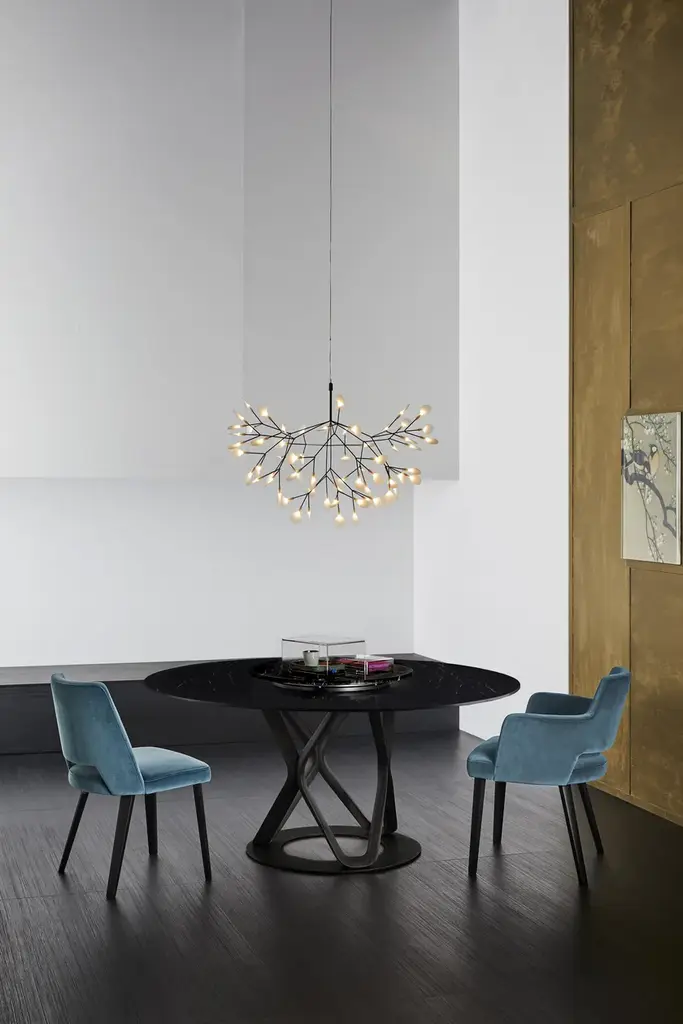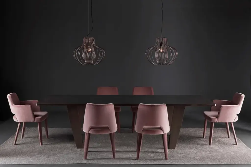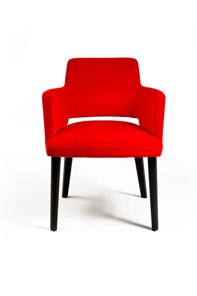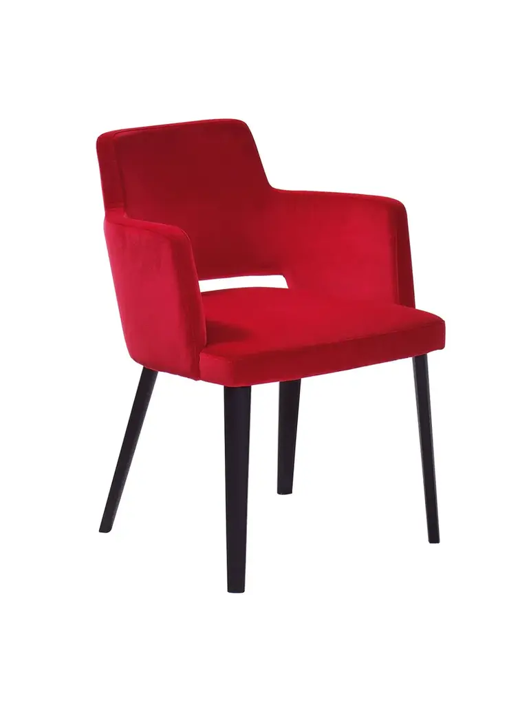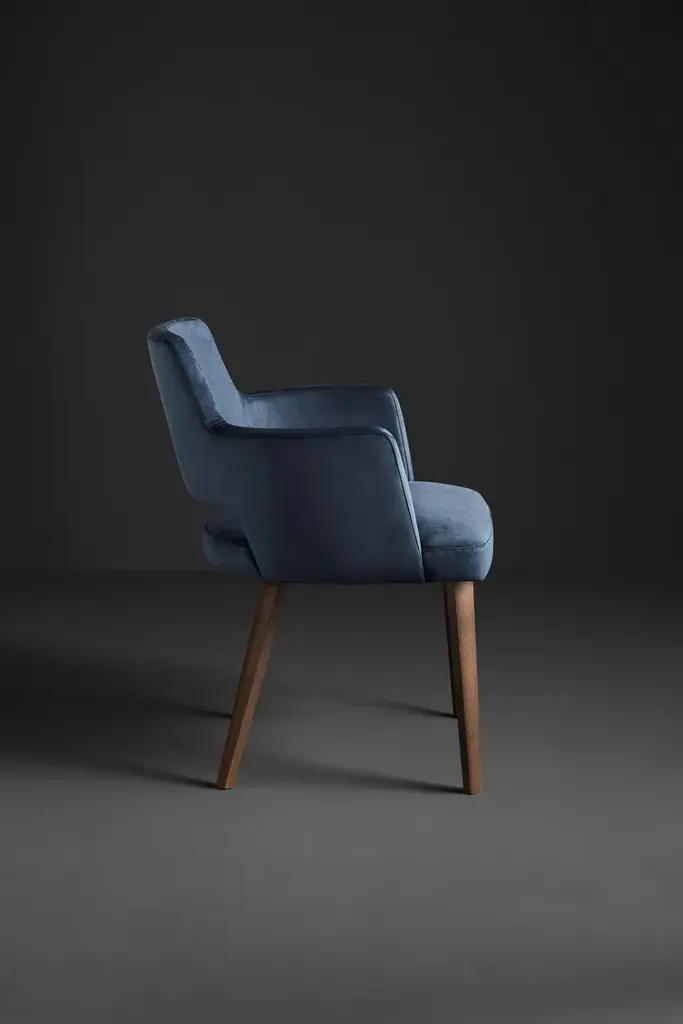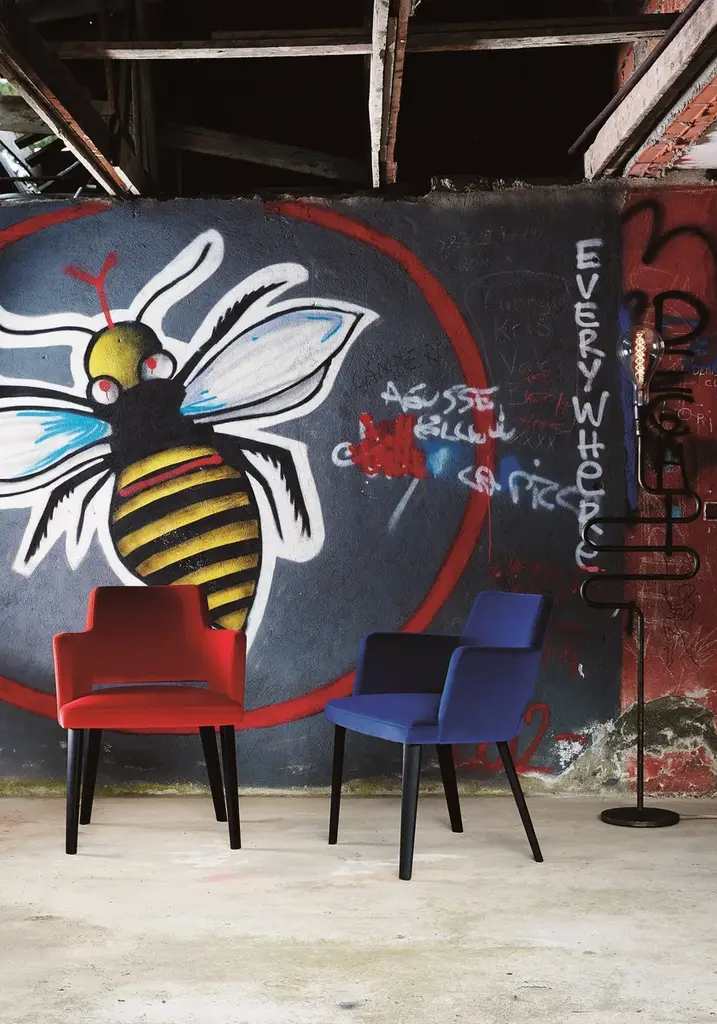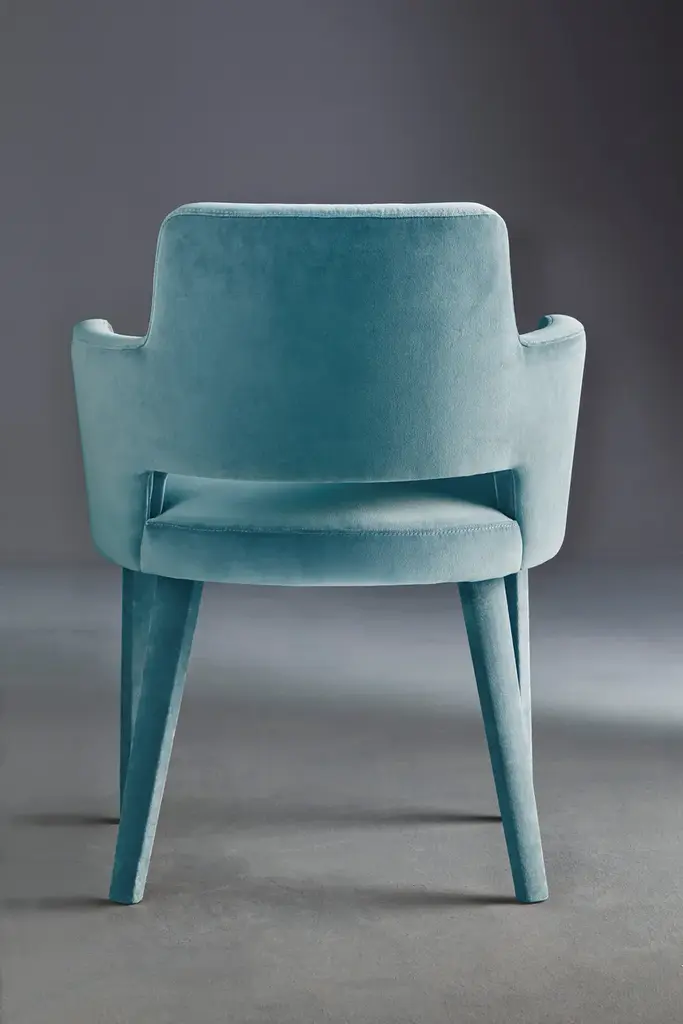 Grace.p is an armchair with natural or lacquered oak wood frame with seat and back padded and upholstered with fabric, artificial leather or real leather. Grace.p is entirely upholstered in its Lux version.The sumptuous reference to contemporary elegance. Grace armchair and chair, with their appeal and attention to detail of their workings, are the ideal proposal for private and collective environments of class and elegance.