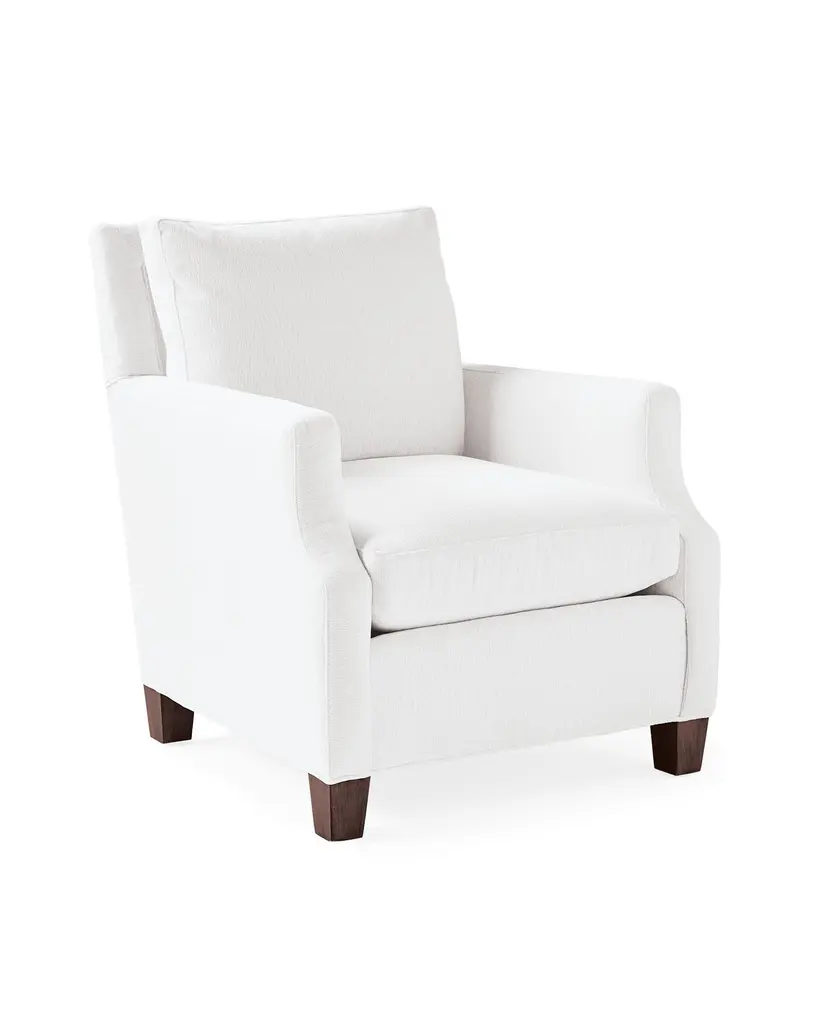 Social graces. A classic silhouette. Upright seat. Lovely notched arms. Delicate piping on back cushions. Tapered feet, skirt, or box pleat.