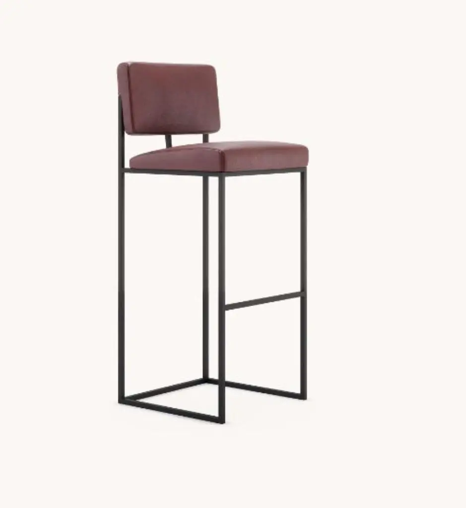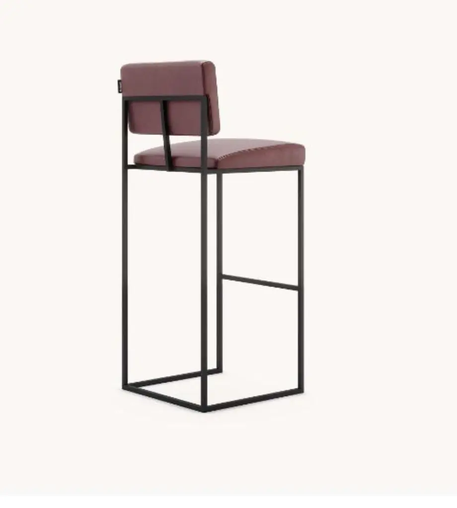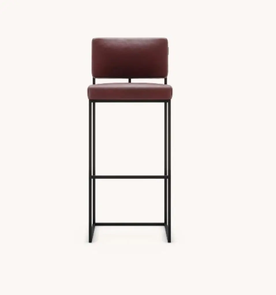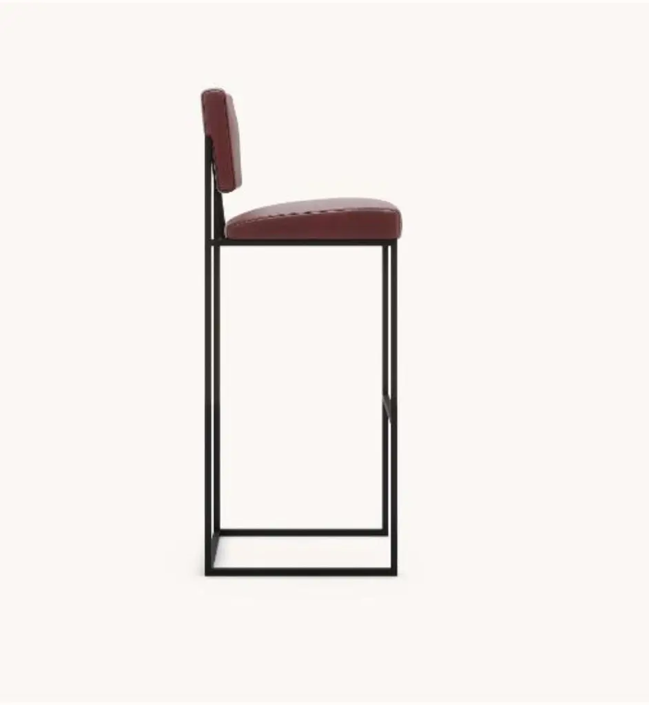 Gram bar chair by Domkapa.Materials: Natural Leather, Black Texturized Steel. Dimensions: W 44 x D 45 x H 109 cm. Also available in different materials. Gram’s geometrical and unexpected shapes are the perfect eye-catching option for any sophisticated project. The bar and counter chairs provide a very sober and comfortable experience as the metal structure aligned with the upholstered back and seat will make sure that geometrical shapes are very adaptable to any environment. The same attractive design can be found in a chair version so every room can have a special touch.Domkapa holds a tremendous passion for detailed stitching, presenting several similarities to the haute-couture philosophy focused on the value of a “made by hand”. Based in Portugal, Domkapa was founded in 2009 as a Private Label. The long and fruitful path, full of experience and achievements inspired the brand’s new identity and independence, in 2017.Domkapa challenges its team to create the perfect daily meeting between design and comfort in each piece of the brand’s collections. Our design team works side by side with the production, and this organic synergy allows the creation of innovative designs.