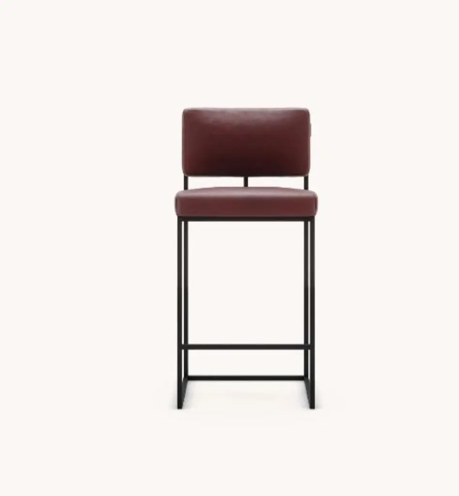 Gram counter chair by DomkapaMaterials: Natural Leather, Black Texturized Steel. Dimensions: W 44 x D 45 x H 109 cm. Also available in different materials. Gram’s geometrical and unexpected shapes are the perfect eye-catching option for any sophisticated project. The bar and counter chairs provide a very sober and comfortable experience as the metal structure aligned with the upholstered back and seat will make sure that geometrical shapes are very adaptable to any environment. The same attractive design can be found in a chair version so every room can have a special touch.Domkapa holds a tremendous passion for detailed stitching, presenting several similarities to the haute-couture philosophy focused on the value of a “made by hand”. Based in Portugal, Domkapa was founded in 2009 as a Private Label. The long and fruitful path, full of experience and achievements inspired the brand’s new identity and independence, in 2017.Domkapa challenges its team to create the perfect daily meeting between design and comfort in each piece of the brand’s collections. Our design team works side by side with the production, and this organic synergy allows the creation of innovative designs.