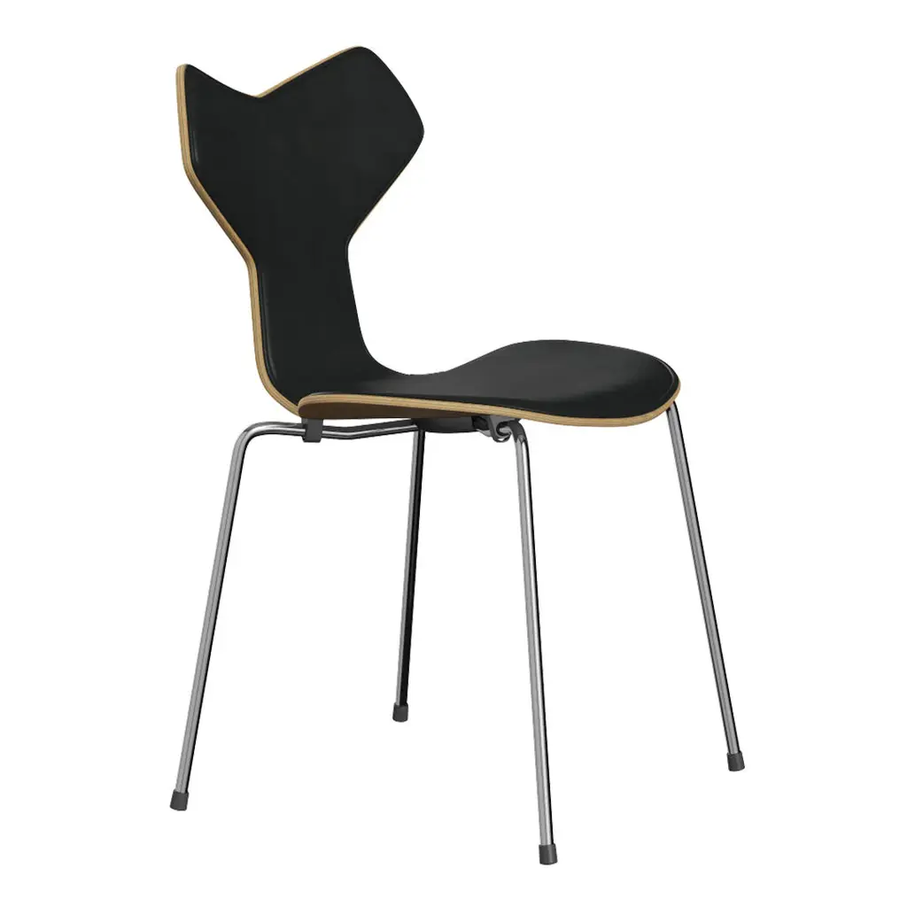 The Grand Prix chair is a chair with graphic edge. It was introduced at the Designers' Spring Exhibition at the Danish Museum of Art & Design in 1957. Later that year, the chair was displayed at the Triennale in Milan where it received the Grand Prix, the finest distinction of the exhibition. The celebrated chair comes in both a steel or wood base and can be customised through a series of colours, wood types and upholstery.